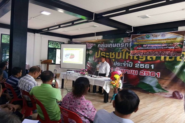 ให้ความรู้แก่เกษตรกรโครงการพัฒนาศักยภาพการผลิตกาแฟและส่งเสริมพัฒนาช่องทางการจำหน่ายกาแฟ การบริหารจัดการดินอย่างมีประสิทธิภาพควบคู่กับการใช้ปุ๋ยตามค่าวิเคราะห์ดิน