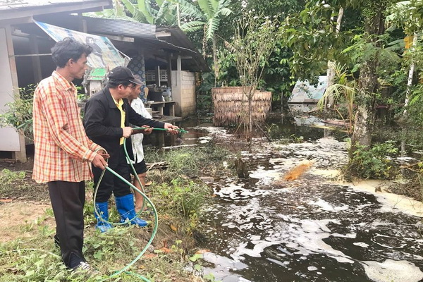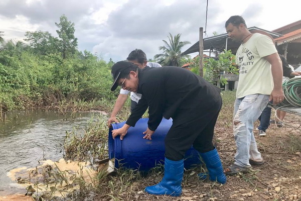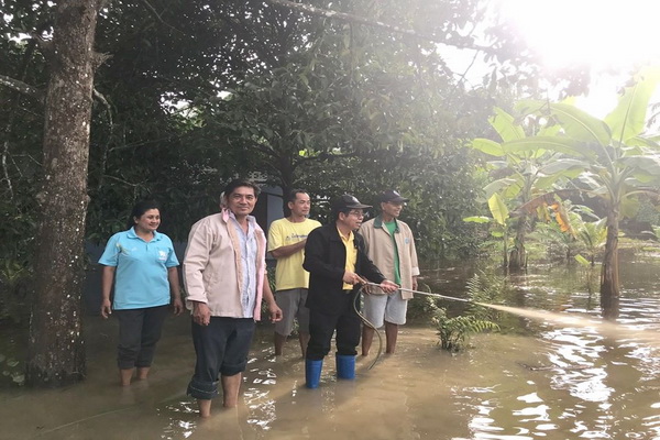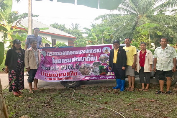 ลงพื้นที่ฟื้นฟูดิน บำบัดน้ำเสีย โดยใช้สารบำบัดน้ำเสียและขจัดกลิ่นเหม็น(พด.6) ในพื้นที่ที่ประสบปัญหาน้ำท่วมขัง อำเภอหลังสวน จังหวัดชุมพร