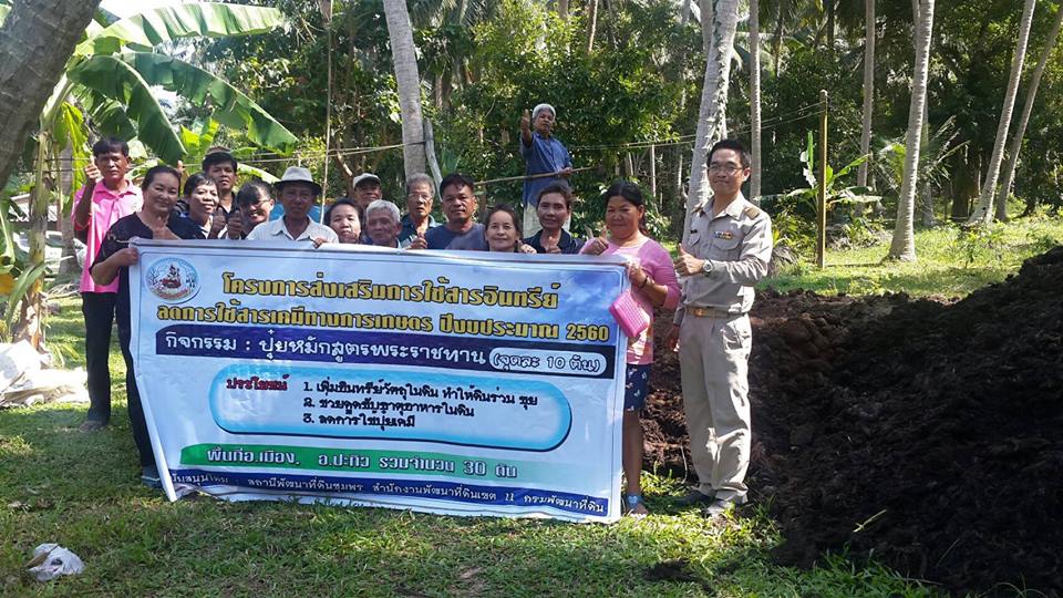 วันจันทร์ที่ 20 กุมภาพันธ์ 2560 ฝ่ายวิชาการพัฒนาที่ดินที่ 3 สถานีพัฒนาที่ดินชุมพร นำโดยนายณัฐพร สิทธิวัฒน์ นักวิชาการเกษตรชำนาญการ พร้อมเจ้าหน้าที่ ถ่ายทอดความรู้เรื่องการเก็บตัวอย่างดิน การทำน้ำหมักและสาธิตการทำปุ๋ยหมักโดยใช้ผลิตภัณฑ์พด.ให้กับสมาชิก ณ ศูนย์ถ่ายทอดเทคโนโลยีการพัฒนาที่ดินประจำตำบลหาดทรายรี หมู่ที่ 4 ตำบลหาดทรายรี อำเภอเมือง จังหวัดชุมพร
