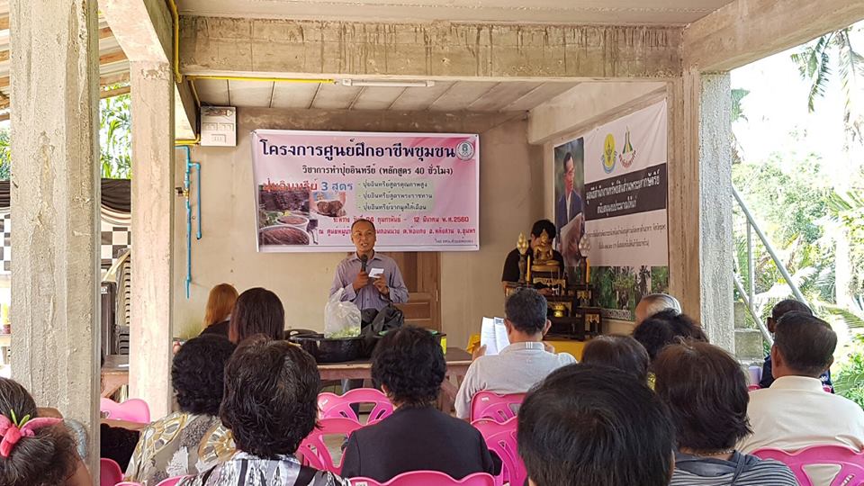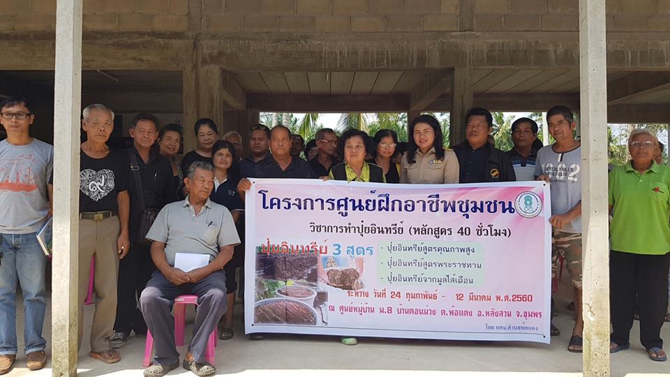 วันที่ 6 มีนาคม 2560 ฝ่ายวิชาการเพื่อการพัฒนาที่ดินที่ 2 สถานีพัฒนาที่ดินชุมพร นำโดย น.ส.ณัฐรดา ภานุมาศ นักวิชาการเกษตรปฏิบัติการ และน.ส.จุฑาทิพย์ ตัณฑวิรุฬห์ นักวิชาการเกษตร ร่วมโครงการศูนย์ฝึกอาชีพชุมชน สาธิตการผลิตปุ๋ยหมักสูตรพระราชทานฯ การผลิตปุ๋ยอินทรีย์คุณภาพสูง และการผลิตปุ๋ยจากมูลไส้เดือน ณ ศูนย์หมู่บ้านพ้อแดง ม.8 ต.พ้อแดง อ.หลังสวน จ.ชุมพร เกษตรกรเข้าร่วมโครงการ 30 ราย