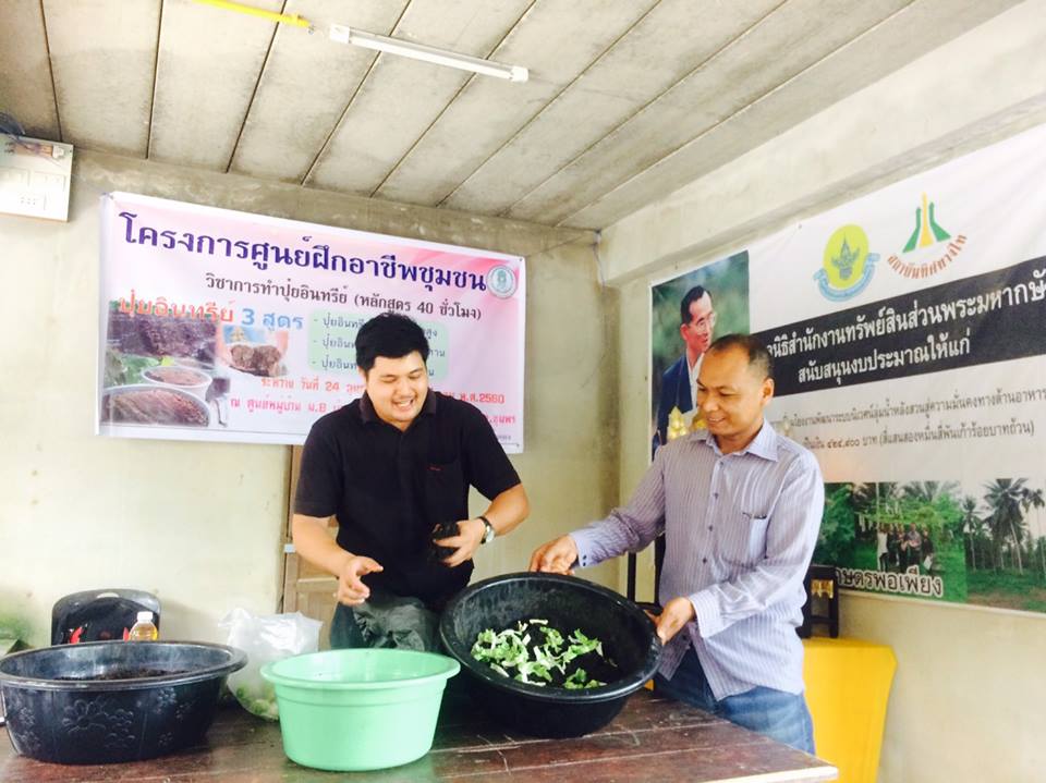 วันที่ 6 มีนาคม 2560 ร่วมโครงการศูนย์ฝึกอาชีพชุมชน สาธิตการผลิตปุ๋ยหมักสูตรพระราชทานฯ