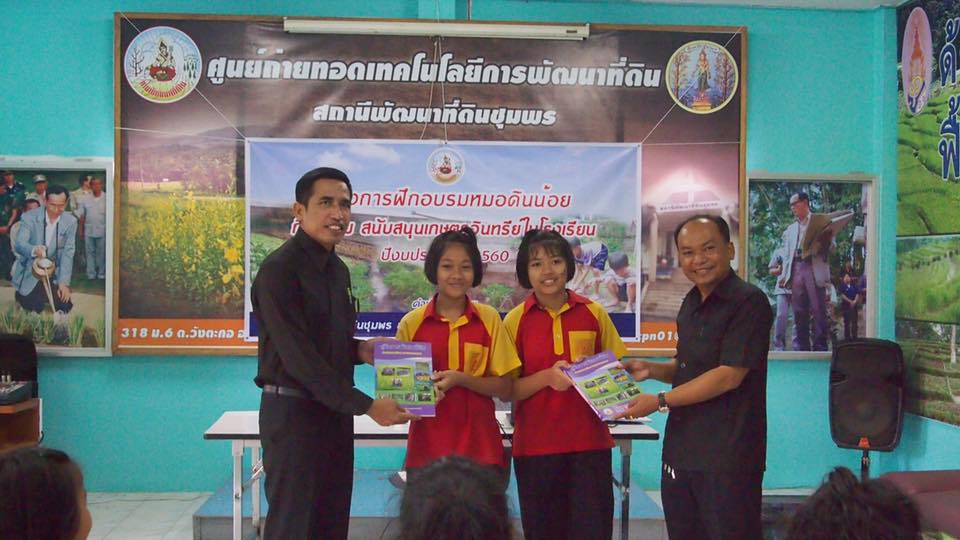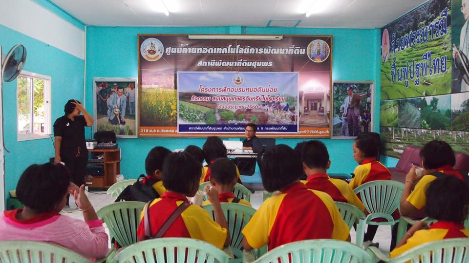 วันที่ 28 ธันวาคม 2559 ฝ่ายวิชาการเพื่อการพัฒนาที่ดินที่ 2 สถานีพัฒนาที่ดินชุมพร นำโดยนายวิโรจน์ ชูช่วย เจ้าพนักงานการเกษตรอาวุโส พร้อมด้วย น.ส.ณัฐรดา ภานุมาศ นักวิขาการเกษตรปฏิบัติการ น.ส.วรรณภา ศศิสนธ์ และน.ส.จุฑาทิพย์ ตัณฑวิรุฬห์ นักวิิชาการเกษตร จัดโครงการฝึกอบรมหมอดินน้อย กิจกรรมสนับสนุนเกษตรอินทรีย์ในโรงเรียน โดยมีหมอดินน้อยจากโรงเรียนบ้านพระรักษ์ราษฎร์บำรุง ต.พระรักษ์ อ.พระโต๊ะ เข้าร่วมอบรมจำนวน 15 คน ณ สถานีพัฒนาที่ดินชุมพร