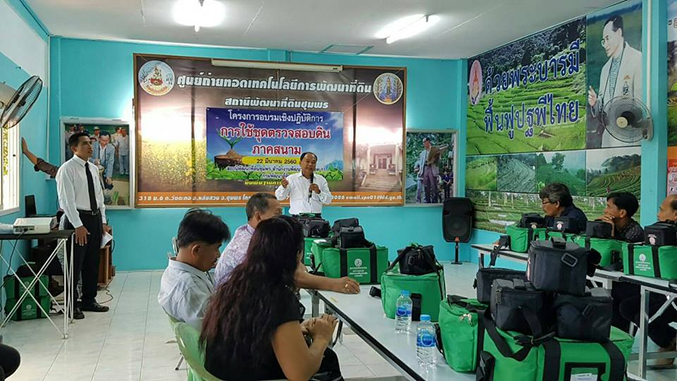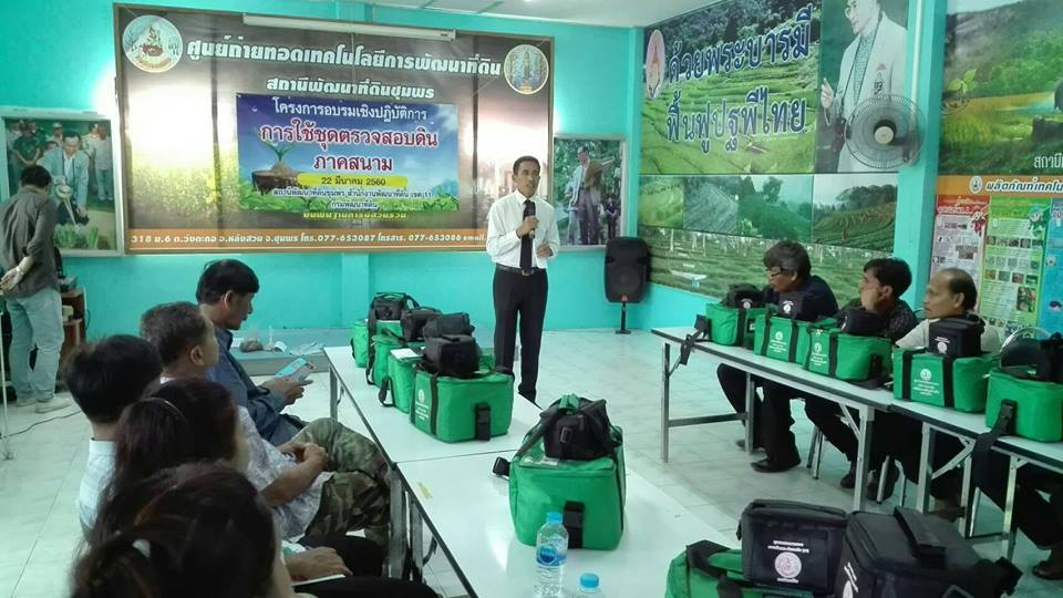 วันพุธที่22 มีนาคม 2560 สถานีพัฒนาที่ดินชุมพร จัดโครงการอบรมเชิงปฏิบัติการเรื่อง" การใช้ชุดตรวจสอบดินภาคสนาม" ให้กับหมอดินอาสาประจำจังหวัด,หมอดินอาสาประจำอำเภอและประธานศูนย์ ศพก.พร้อมทั้งมอบชุดตรวจสอบดินให้กับผู้เข้าอบรม เพื่อนำไปให้บริการวิเคราะห์ดินให้กับเกษตรกรในพื้นที่ต่อไป