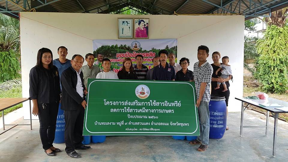 วันอังคารที่ 10 มกราคม 2560 สถานีพัฒนาที่ดินชุมพร ฝ่ายวิชาการเพื่อการพัฒนาที่ดินที่ 2นำโดยนายวิโรจน์ ชูช่วย เจ้าพนักงานการเกษตรอาวุโส พร้อมด้วย น.ส.ณัฐรดา ภานุมาศ นักวิชาการเกษตรปฏิบัติการ ส่งสุขปีใหม่ 2560 ฟื้นฟูพื้นที่เกษตรหลังน้ำท่วม มอบปัยจัยการผลิตแก่กลุ่มเข้มแข็งฯ (ต่อยอด) โครงการส่งเสริมการใช้สารอินทรีย์ลดการใช้สารเคมีทางการเกษตร ปีงบประมาณ 2560ณ ศูนย์หมู่บ้าน ม.12 ต.ละแม อ.ละแม จ.ชุมพร