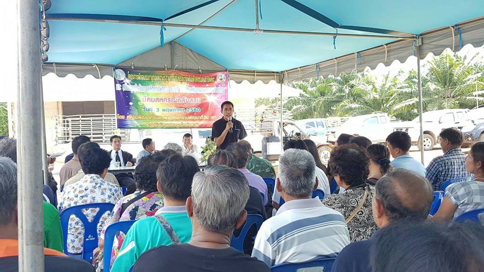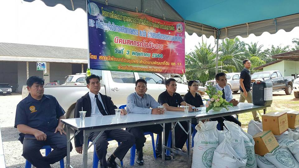 วันที่ 3 พฤษภาคม 2560 คณะกรรมการขับเคลื่อนนโยบายกระทรวงเกษตรและสหกรณ์จังหวัดชุมพร (Sc) นำโดย นายสุทีป สุธาประดิษฐ์ เกษตรและสหกรณ์จังหวัด พร้อมด้วย นายจำเริญ นาคคง ผู้อำนวยการสถานีพัฒนาที่ดินชุมพร และหัวหน้าส่วนราชการสังกัดกระทรวงเกษตรและสหกรณ์ ออกเยี่ยมเยือนและติดตามผลการดำเนินงานโครงการระบบส่งเสริมเกษตรแปลงใหญ่ปาล์มน้ำมัน นิคมสหกรณ์หลังสวน ต.ทุ่งหลวง อ.ละแม พร้อมมอบปัจจัยการผลิตด้านการพัฒนาที่ดิน เช่น ปูนโดโลไมท์, น้ำหมักชีวภาพ ให้กับเกษตรกรที่เข้าร่วมโครงการ จำนวน 755 ราย เพื่อสนับสนุนและส่งเสริมให้เกษตรกรในด้านการลดต้นทุนและเพิ่มผลผลิต