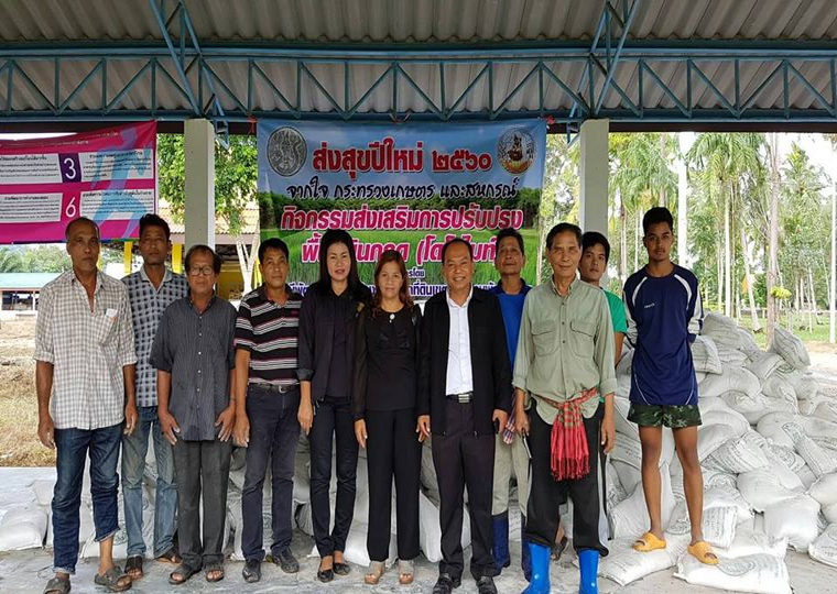 วันที่ 10 มกราคม 2560 ฟื้นฟูพื้นที่เกษตรหลังน้ำท่วม มอบสารปรับปรุงบำรุงดินพื้นที่ดินกรด (โดโลไมท์)