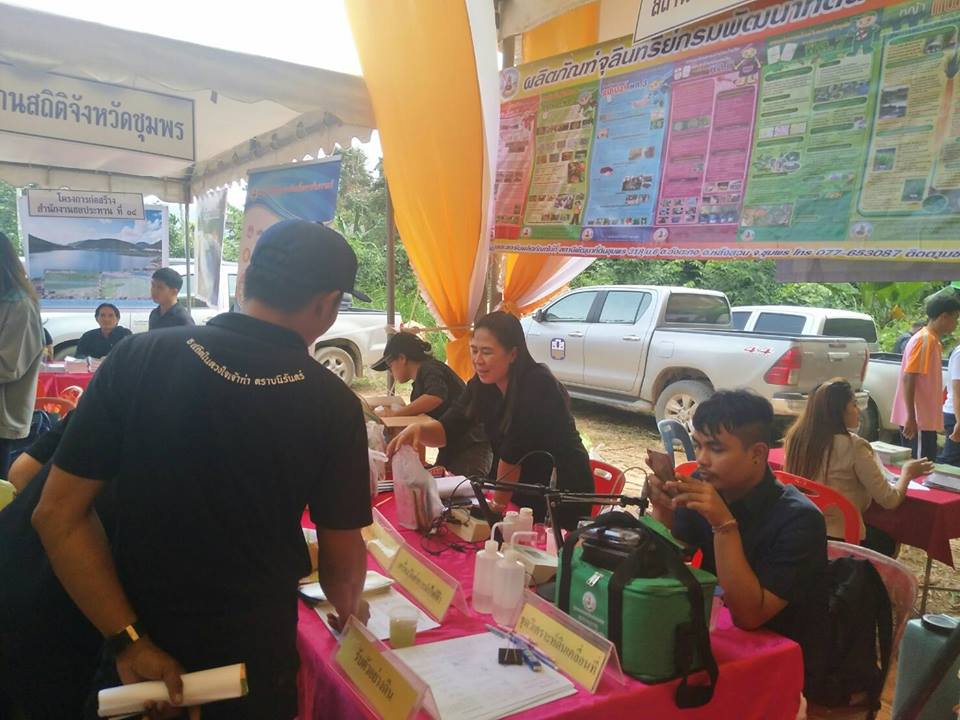 วันพุธที่14 มิถุนายน 2560 ฝ่ายวิชาการเพื่อการพัฒนาที่ดินที่ 2 สถานีพัฒนาที่ดินชุมพร นำโดย นายวิโรจน์ ชูช่วย เจ้าพนักงานการเกษตรอาวุโส พร้อมด้วยเจ้าหน้าที่ และฝ่ายวิเคราะห์ดิน สำนักงานพัฒนาที่ดินเขต 11 ร่วมบริการประชาชน โครงการจังหวัดพบประชาชนจังหวัดชุมพร ประจำปี 2560 เพื่อบำบัดทุกข์ บำรุงสุข สร้างรอยยิ้ม โดยมีนายณรงค์ พลละเอียด ผู้ว่าราชการจังหวัดชุมพร เป็นประธานเปิดงาน พร้อมด้วยหัวหน้าส่วนราชการต่างๆ ณศูนย์หมู่บ้านบ้านห้วยทรายขาว หมู่ 13 ตำบลหาดยาย อำเภอหลังสวน จังหวัดชุมพร