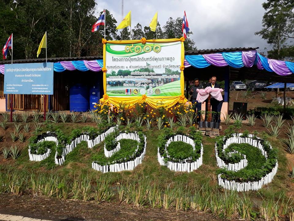 วันอังคารที่ 22 สิงหาคม 2560 นายชัยชนะ บัวชุม นักวิชาการเกษตรชำนาญการพิเศษ หัวหน้าฝ่ายวิชาการเพื่อการพัฒนาที่ดินที่ 1 สถานีพัฒนาที่ดินชุมพร ขับเคลื่อนโครงการ 9101 ตามรอยเท้าพ่อ ภายใต้ร่มพระบารมี เพื่อการพัฒนาการเกษตรอย่างยั่งยืน ในอำเภอสวี จังหวัดชุมพร 2 พื้นที่ โดยมีนายชาญ เสมสวัสดิ์ นายอำเภอสวี ประธานเปิดงาน ผู้นำท้องที่ท้องถิ่นหมอดินอาสาเกษตรกรในชุมชนทุ่งระยะ 1 หมู่ที่1,2,3,4,5, 11 ร่วมผลิตปุ๋ยอินทรีย์คุณภาพสูงจำนวน 200ตัน เกษตรกรชุมชนนาสักสวี2 หมู่ที่1,6,11,13, 18, 19 ร่วมผลิตปุ๋ยอินทรีย์คุณภาพสูงจำนวน 165 ตัน