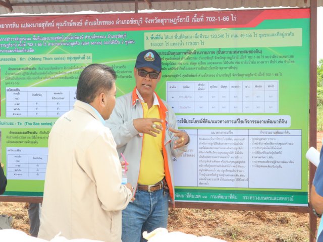 วันศุกร์ที่ 12 มกราคม 2561 เวลา 10.00น. นายถวิล มั่งนุ้ย ผู้อำนวยการสำนักงานพัฒนาที่ดินเขต 11 พร้อมคณะฯ ลงพื้นที่ตรวจเยี่ยมโครงการภายใต้นโยบายที่ดินแห่งชาติ (คทช.) ปีงบประมาณ 2561 อำเภอชัยบุรี จังหวัดสุราษฎร์ธานี แปลงของนายสุทัศน์ คุณรักษ์พงษ์ โดยมีนายสุจินต์ นิลประดับแก้ว ผู้อำนวยการสถานีพัฒนาที่ดินสุราษฎร์ธานี นายวีระยุทธ สุทธิรักษ์ นักวิชาการเกษตรชำนาญการพิเศษ ผู้รับผิดชอบพื้นที่ และเกษตรกรที่เข้าร่วมโครงการฯในพื้นที่ร่วมให้การต้อนรับ ณ หมู่ที่5 ตำบลไทรทอง อำเภอชัยบุรี จังหวัดสุราษฎร์ธานี