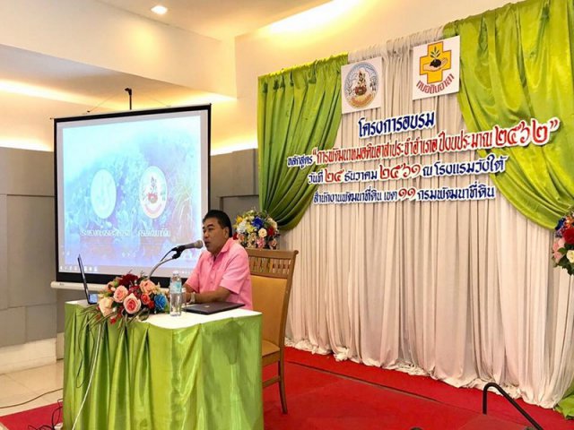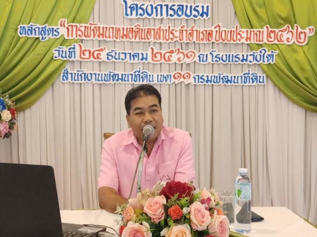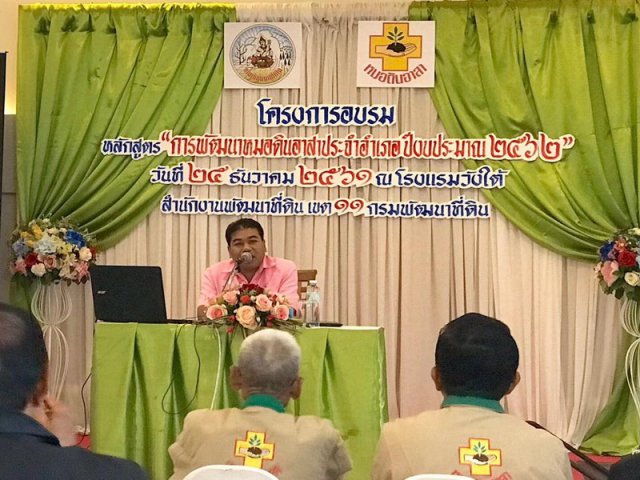 วันอังคารที่ 25 ธันวาคม 2561 เวลา 09.30 น. นายถวิล มั่งนุ้ย ผู้อำนวยการสำนักงานพัฒนาที่ดิน 11 เป็นประธานเปิดโครงการอบรม หลักสูตร "การพัฒนาหมอดินอาสาประจำอำเภอ" ประจำปีงบประมาณ 2562 โดยมีนายสุรินทร์ ไวยเจริญ ผู้อำนวยการกลุ่มวิชาการเพื่อการพัฒนาที่ดิน กล่าวรายงานและวัตถุประสงค์การจัดอบรมในครั้งนี้ เพื่อให้หมอดินอาสาประจำอำเภอ ทราบถึงกระบวนการรับรองมาตรฐานเกษตรอินทรีย์แบบมีส่วนร่วม PGS และปัจจัยการผลิตเกษตรอินทรีย์ และศึกษาดูงานศูนย์เรียนรู้เกี่ยวกับเกษตรอินทรีย์ กสิกรรมธรรมชาติ กสิกรรมยั่งยืน ศูนย์เรียนรู้ PGS เครือข่ายเกษตรอิทรีย์วิถีไทย เพื่อให้เกิดการเรียนรู้และมีประสิทธิภาพเพิ่มมากขึ้น ซึ่งมีหมอดินอาสาประจำอำเภอจาก 4 จังหวัดได้แก่ จังหวัดชุมพร พังงา ภูเก็ต และจังหวัดสุราษฎร์ธานี รวม 38 คน เข้าร่วมการอบรมฯ ณ โรงแรมวังใต้ ตำบลตลาด อำเภอเมือง จังหวัดสุราษฎร์ธานี