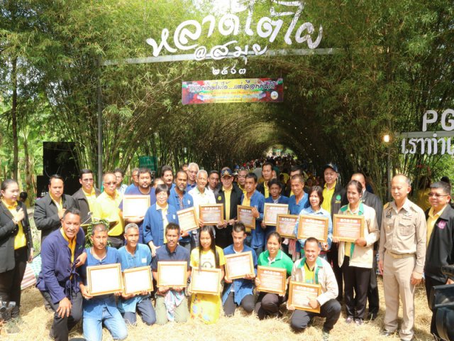 วันอาทิตย์ที่ 19 มกราคม 2563 นางสาวเบญจพร ชาครานนท์ อธิบดีกรมพัฒนาที่ดิน พร้อมด้วยนายถวิล มั่งนุ้ย รองอธิบดีกรมพัฒนาที่ดินด้านปฏิบัติการ นายภิญโญ สุวรรณชนะ ผู้อำนวยการสำนักงานพัฒนาที่ดินเขต 11 หัวหน้าส่วนราชการ เจ้าหน้าที่ในสังกัด สพข.11 และส่วนราชการที่เกี่ยวข้อง ร่วมต้อนรับ ร้อยเอกธรรมนัส พรหมเผ่า รัฐมนตรีช่วยว่าการกระทรวงเกษตรและสหกรณ์ และคณะฯ ลงพื้นที่โครงการ รวมพลคนอินทรีย์ เปิดตลาดเกษตรอินทรีย์ PGS “หลาดใต้ไผ่เกาะสมุย” โดยมีนายธีระ อนันตเสรีวิทยา รองผู้ว่าราชการจังหวัดสุราษฎร์ธานี กล่าวต้อนรับ และนางสาวเบญจพร ชาครานนท์ อธิบดีกรมพัฒนาที่ดิน กล่าวรายงานฯ โอกาสนี้ รมช.กษ. ได้มอบใบรับรองการเข้าร่วมโครงการเกษตรอินทรีย์ PGS และมอบนโยบายแนวทางการขับเคลื่อนเกษตรอินทรีย์ ให้กับมิสเตอร์เกษตรอินทรีย์ เยี่ยมชมนิทรรศการต่างๆ และพบปะกลุ่มเกษตรอินทรีย์ PGS ณ ศูนย์เรียนรู้เกษตรอินทรีย์ สมุยกรีนปาร์ค บ้านบางรักษ์ ตำบลบ่อผุด อำเภอเกาะสมุย จังหวัดสุราษฎร์ธานี