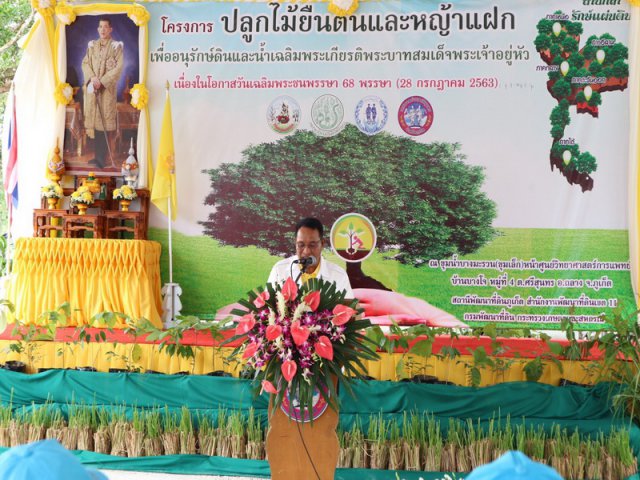 สถานีพัฒนาที่ดินภูเก็ต จัดโครงการปลูกไม้ยืนต้นและหญ้าแฝกเพื่อการอนุรักษ์ดินและน้ำ”ล้านกล้ารักษ์แผ่นดิน”เฉลิมพระเกียรติพระบาทสมเด็จพระวชิรเกล้าเจ้าอยู่หัว เนื่องในโอกาสวันเฉลิมพระชนมพรรษา ครบ 68 พรรษา