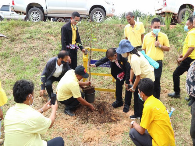 วันที่ 8 กันยายน 2563 นายถวิล มั่งนุ้ย รองอธิบดีกรมพัฒนาที่ดิน ด้านปฏิบัติการ นายภิญโญ สุวรรณชนะ ผู้อำนวยการสำนักงานพัฒนาที่ดินเขต 11 นายจำเริญ นาคคง ผู้อำนวยการสถานีพัฒนาที่ดินสุราษฎร์ธานี หัวหน้าส่วนราชการ และเจ้าหน้าที่สถานีพัฒนาที่ดินสุราษฎร์ธานี สำนักงานพัฒนาที่ดินเขต 11 พร้อมด้วยคณะเจ้าหน้าที่ส่วนท้องถิ่น และประชาชนในพื้นที่ ร่วมปลูกไม้ยืนต้นเพื่อการอนุรักษ์ดินและน้ำ โครงการปลูกไม้ยืนต้น “ล้านกล้ารักษ์แผ่นดิน” เพื่อการอนุรักษ์ดินและน้ำ เฉลิมพระเกียรติพระบาทสมเด็จพระวชิรเกล้าเจ้าอยู่หัว เนื่องในโอกาสวันเฉลิมพระชนมพรรษา ครบ 68 พรรษา ซึ่งโครงการ ฯ มีวัตถุประสงค์เพื่อแก้ไขปัญหาสภาวะโลกร้อน ณ อ่างเก็บน้ำชุมชนร่วมใจพัฒนา บ้านสหกรณ์ หมู่ที่ 4 ตำบลกรูด อำเภอพุนพิน จังหวัดสุราษฎร์ธานี