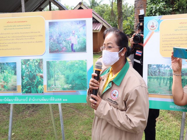 วันจันทร์ที่ 2 พฤศจิกายน 2563 เวลา 13.30 น นางสาวเบญจพร ชาครานนท์ อธิบดีกรมพัฒนาที่ดิน พร้อมด้วยนางสาวภัทราภรณ์ โสเจยยะ รองอธิบดีกรมพัฒนาที่ดินด้านบริหาร นายภิญโญ สุวรรณชนะ ผู้อำนวยการสำนักงานพัฒนาที่ดินเขต 11 หัวหน้าส่วนราชการ เจ้าหน้าที่ในสังกัด สพข.11 และส่วนราชการที่เกี่ยวข้อง ร่วมต้อนรับ ร้อยเอกธรรมนัส พรหมเผ่า รัฐมนตรีช่วยว่าการกระทรวงเกษตรและสหกรณ์ และคณะฯ ลงพื้นที่ตรวจเยี่ยมศูนย์ถ่ายทอดเทคโนโลยีการพัฒนาที่ดินประจำตำบลปกาสัย อำเภอเหนือคลอง จังหวัดกระบี่ ของนายพิชิต ชูมณี หมอดินอาสาประจำตำบล เพื่อเยี่ยมชมการปรับเปลี่ยนพื้นที่เกษตรเชิงเดี่ยว (ปลูกปาล์มน้ำมัน) เป็นเกษตรผสมผสาน พร้อมมอบบัตรดินดีแก่เกษตรกร จำนวน 5 รายโดยมีนายสมโภชน์ บุตรเผียน นายกองค์การบริหารส่วนตำบลปกาสัย กล่าวต้อนรับ นายภิญโญ สุวรรณชนะ ผู้อำนวยการสำนักงานพัฒนาที่ดินเขต 11 กล่าวรายงาน และนายพิชิต ชูมณี ประธานศูนย์ฯ กล่าวประวัติความเป็นมา การดำเนินกิจกรรมต่างๆ ภายในศูนย์ฯ โอกาสนี้ รมช.กษ. ได้พบปะกลุ่มเกษตรกรโรงสีข้าวคุณธรรมและตลาดสินค้าเกษตรปลอดภัยในชุมชนอีกด้วย