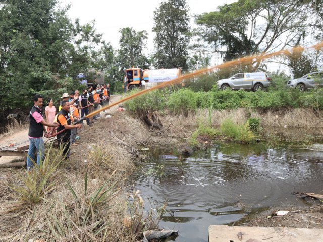 "พด.เร่งระดมฉีดพ่นสารบำบัดน้ำเสียและขจัดกลิ่นเหม็น(พด.6)ในพื้นที่ อ.พุนพิน จ.สุราษฎร์ธานี"