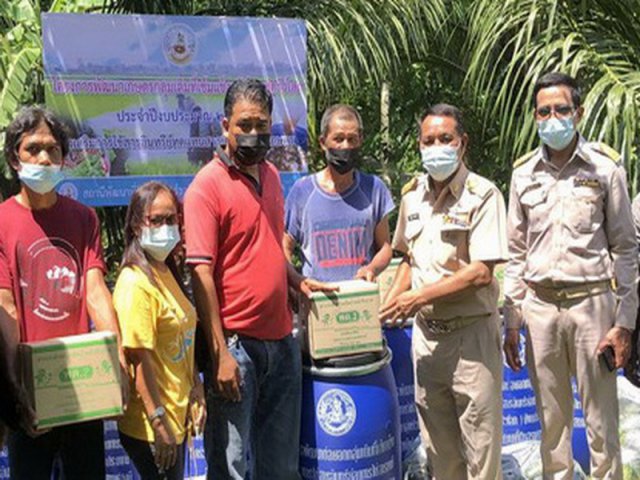 วันที่ 31 พฤษภาคม 2564 นายภิญโญ สุวรรณชนะ ผู้อำนวยการสำนักงานพัฒนาที่ดินเขต 11 พร้อมด้วยนายจำเริญ นาคคง ผู้อำนวยการสถานีพัฒนาที่ดินสุราษฎร์ธานี และเจ้าหน้าที่ฝ่ายวิชาการฯลงพื้นที่ดำเนินงานโครงการพัฒนาต่อยอดกลุ่มเดิมที่เข้มแข็ง ส่งเสริมการใช้สารอินทรีย์ลดการใช้สารเคมีทางการเกษตร ปีงบประมาณ 2564 โดยสนับสนุนปัจจัยการผลิตน้ำหมักชีวภาพ และสารเร่งจุลินทรีย์พด.2 พร้อมให้คำแนะนำการปรับปรุงบำรุงดินให้เหมาะสมต่อการพืชให้แก่กลุ่มเกษตรกรในพื้นอำเภอกาญจนดิษฐ์ จังหวัดสุราษฎร์ธานี
