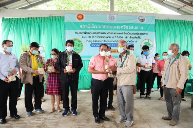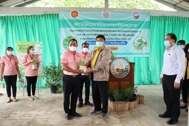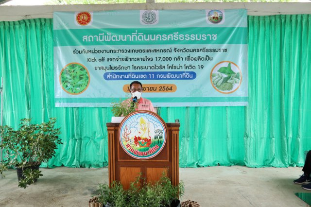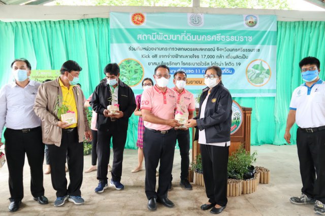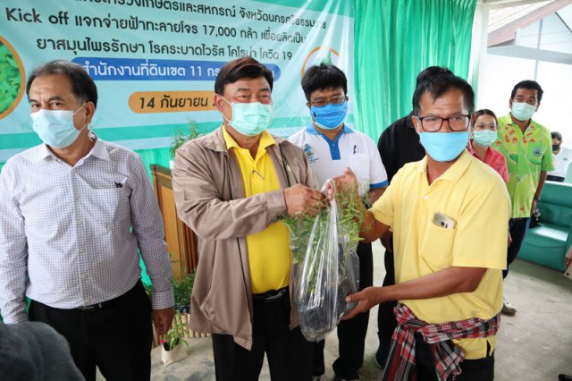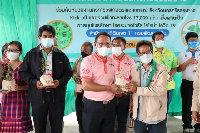 สพด.นครศรีฯ Kick off แจกจ่ายฟ้าทะลายโจร 17,000 กล้า เพื่อผลิตเป็นยาสมุนไพรรักษาโรคระบาดไวรัสโคโรน่า โควิด 19