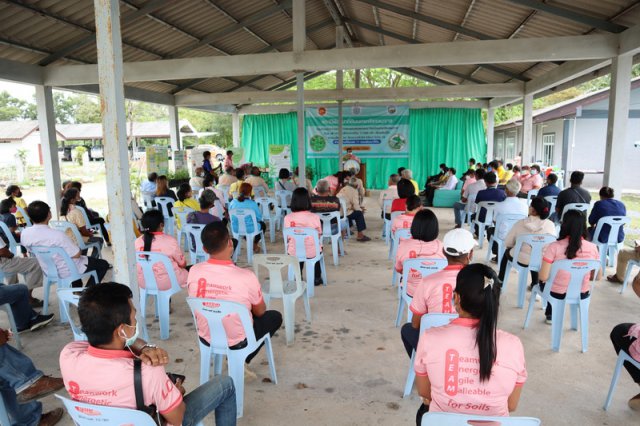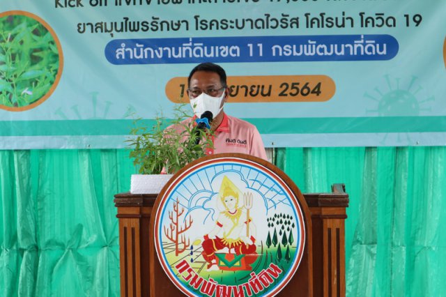 วันอังคาร ที่ 14 กันยายน 2564 เวลา 14.00 น. นายคำนึง แสงขำ ผู้อำนวยการสถานีพัฒนาที่ดินนครศรีธรรมราช ร่วมกับท่านหัวหน้าส่วนราชการ สังกัดกระทรวงเกษตรและสหกรณ์จังหวัดนครศรีธรรมราช เทศบาลตำบลนาสาร และผู้มีเกียรติทุกท่าน โดยมีนายภิญโญ สุวรรณชนะ ผู้อำนวยการสำนักงานพัฒนาที่ดินเขต11 เป็นประธานในพิธี แจกจ่ายฟ้าทะลายโจรแก่พี่น้องหมอดินอาสาและประชาชนที่สนใจ เนื่องด้วยกรมพัฒนาที่ดิน มอบหมายให้สำนักงานพัฒนาที่ดินเขตและสถานีพัฒนาที่ดินทุกจังหวัด ดำเนินการจัดทำแปลงสาธิตปรับปรุงบำรุงดินและขยายพันธุ์ฟ้าทะลายโจร เพื่อแจกจ่ายเป็นพืชสมุนไพร เป้าหมายรวม 1,000,000 กล้า ในช่วงเดือน สิงหาคม ถึงเดือน ธันวาคม 2564 โดยสำนักงานพัฒนาที่ดินเขต 11 จังหวัดสุราษฎร์ธานี ได้รับเป้าหมายจากกรมพัฒนาที่ดิน ให้ผลิตต้นกล้าฟ้าทะลายโจร จำนวน 100,000 กล้า ได้มอบหมายให้ สถานีพัฒนาที่ดิน สังกัด สำนักงานพัฒนาที่ดินเขต 11 ทั้ง 7 จังหวัด และสถานีพัฒนาที่ดินนครศรีธรรมราช ได้รับเป้าหมายการผลิต 17,000 กล้า ผลิตเพื่อแจกจ่ายให้ส่วนราชการ พี่น้องประชาชนและภาคเอกชน เพื่อนำไปปลูกขยายพันธุ์และนำส่วนต่างๆ ของต้นฟ้าทะลายโจรมาผลิตเป็นยาสมุนไพร รักษาโรคระบาดไวรัสโคโรน่า (โควิด-19) ณ สถานีพัฒนาที่ดินนครศรีธรรมราช ตำบลนาสาร อำเภอพระพรหม จังหวัดนครศรีธรรมราช
