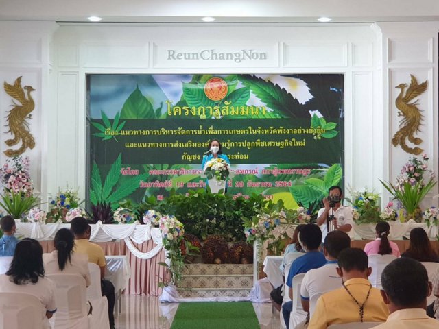 สัมมนาแนวทางการบริหารจัดการน้ำเพื่อการเกษตรในจังหวัดพังงาอย่างยั่งยืนและแนวทางการส่งเสริมองค์ความรู้การปลูกพืชเศรษฐกิจใหม่ กัญชง กัญชา กระท่อม และกิจกรรมคลินิกเกษตรเคลื่อนที่