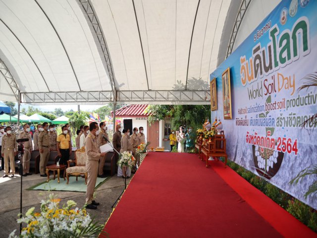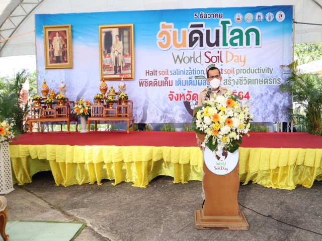 วันพุธที่ 15 ธันวาคม 2564 เวลา 10.00 น. นายภิญโญ สุวรรณชนะ ผู้อำนวยการสำนักงานพัฒนาที่ดินเขต 11 พร้อมด้วยนายปัญญา ใจสมุทร ผู้อำนวยการสถานีพัฒนาที่ดินภูเก็ต เจ้าหน้าที่สถานีพัฒนาที่ดินภูเก็ต หัวหน้าส่วนราชการที่เกี่ยวข้อง ร่วมพิธีเปิดงานวันดินโลก (World Soil Day) ประจำปี 2564 "Halt soil salinization, boost soil productivity : พิชิตดินเค็ม เติมเต็มผลผลิต สร้างชีวิตเกษตร" ณ สถานีพัฒนาที่ดินภูเก็ต ตำบลศรีสุนทร อำเภอถลาง จังหวัดภูเก็ต โดยมีนายอำนวย พิณสุวรรณ รองผู้ว่าราชการจังหวัดภูเก็ต เป็นประธานในพิธีเปิดฯ และนายปัญญา ใจสมุทร ผู้อำนวยการสถานีพัฒนาที่ดินภูเก็ต กล่าวรายงานถึงวัตถุประสงค์การจัดงานวันดินโลกในครั้งนี้ เพื่อน้อมรำลึกในพระมหากรุณาธิคุณพระบาทสมเด็จ พระบรมชนกาธิเบศร มหาภูมิพลอดุลยเดชมหาราช บรมนาถบพิตร รัชกาลที่ 9 และเผยแพร่สืบสานพระราชปณิธานในการพัฒนาทรัพยากรดินและน้ำ ให้เกิดความอุดมสมบูรณ์ สามารถทำการเกษตรที่สร้างความมั่นคงทางด้านอาหาร และเป็นการอนุรักษ์ระบบนิเวศตามธรรมชาติให้เกิดความยั่งยืนในหัวข้อ "Halt soil salinization, boost soil productivity : พิชิตดินเค็ม เติมเต็มผลผลิต สร้างชีวิตเกษตร" ซึ่งภายในงานมีการจัดแสดงนิทรรศการเฉลิมพระเกียรตินักวิทยาศาสตร์ดินเพื่อมนุษยธรรม ประวัติความเป็นมาของวันดินโลก นิทรรศการพิชิตดินเค็ม เติมเต็มผลผลิต สร้างชีวิตเกษตร (ดินเค็มชายทะเล) นิทรรศการหญ้าแฝกเพื่ออนุรักษ์ดินและน้ำ จุดเรียนรู้ด้านการปรับปรุงบำรุงดิน ปุ๋ยอินทรียคุณภาพสูง สารเร่งซุปเปอร์พด. น้ำหมักชีวภาพ เทคโนโลยีการเกษตรเครื่องตัดหญ้าบังคับวิทยุ โดยมีเกษตรกร กลุ่มเกษตรกร ประชาชน หมอดินอาสา ส่วนราชการ หน่วยงานภาคเอกชนและสื่อมวลชน เข้าร่วมงานในครั้งนี้