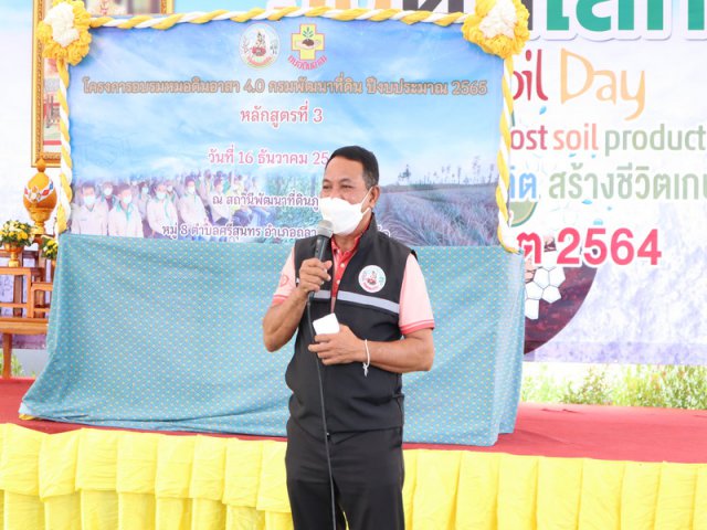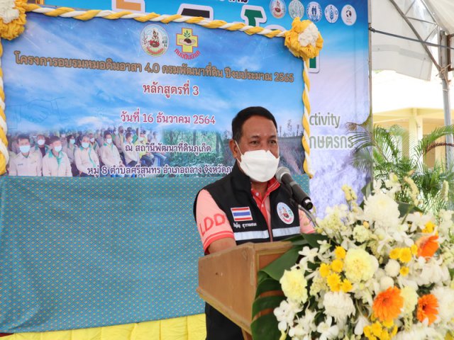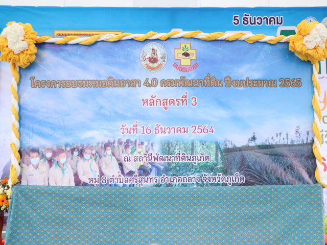 วันพฤหัสบดีที่ 16 ธันวาคม 2564 สถานีพัฒนาที่ดินภูเก็ต จัดโครงการอบรมหมอดินอาสา 4.0 หลักสูตรที่ 3 ประจำปีงบประมาณ 2565 โดยมีนายภิญโญ สุวรรณชนะ ผู้อำนวยการสำนักงานพัฒนาที่ดินเขต 11 เป็นประธานเปิดการอบรมครั้งนี้ และนายปัญญา ใจสมุทร ผู้อำนวยการสถานีพัฒนาที่ดินภูเก็ต กล่าวรายงานถึงวัตถุประสงค์การจัดอบรมเพื่อสร้างความเข้มแข็งให้กับหมอดินอาสามืออาชีพที่มีความรู้ความชำนาญเฉพาะด้าน เพื่อพัฒนาศักยภาพของหมอดินอาสาด้านการเกษตรโดยให้สามารถเข้าถึงข้อมูลและใช้เทคโนโลยีสารสนเทศในการพัฒนาพื้นที่การเกษตรของตนเอง และเพื่อปรับปรุงฐานข้อมูลหมอดินอาสาในรูปแบบดิจิทัล เพื่อพัฒนาเป็น Big data รองรับองค์กร ณ สถานีพัฒนาที่ดินภูเก็ต หมู่ 8 ตำบลศรีสุนทร อำเภอถลาง จังหวัดภูเก็ต มีหมอดินอาสาเข้าร่วมอบรมจำนวน 38 ราย