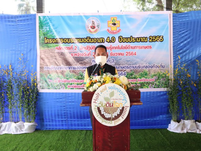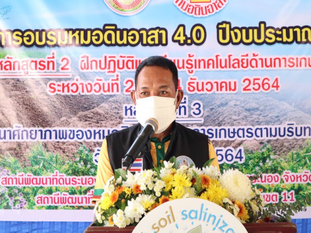 วันพฤหัสบดีที่ 23 ธันวาคม 2564 สถานีพัฒนาที่ดินระนอง จัดโครงการอบรมหมอดินอาสา 4.0 หลักสูตรที่ 2 และ หลักสูตรที่ 3 ประจำปีงบประมาณ 2565 โดยมีนายภิญโญ สุวรรณชนะ ผู้อำนวยการสำนักงานพัฒนาที่ดินเขต 11 เป็นประธานเปิดการอบรมครั้งนี้ และนางพรทิพย์ สวนชำนิ นักวิชาการเกษตรชำนาญการ กล่าวรายงานถึงวัตถุประสงค์การจัดอบรมเพื่อสร้างความเข้มแข็งให้กับหมอดินอาสามืออาชีพที่มีความรู้ความชำนาญเฉพาะด้าน เพื่อพัฒนาศักยภาพของหมอดินอาสาด้านการเกษตรโดยให้สามารถเข้าถึงข้อมูลและใช้เทคโนโลยีสารสนเทศในการพัฒนาพื้นที่การเกษตรของตนเอง และเพื่อปรับปรุงฐานข้อมูลหมอดินอาสาในรูปแบบดิจิทัล เพื่อพัฒนาเป็น Big data รองรับองค์กร ณ สถานีพัฒนาที่ดินระนอง ตำบลราชกรูด อำเภอเมือง จังหวัดระนอง มีหมอดินอาสาเข้าร่วมอบรมจำนวน 70 ราย