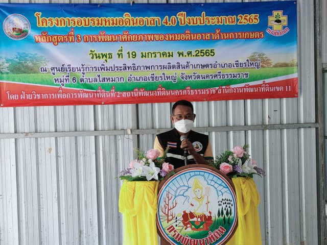 ผอ.สพข.11 เปิดโครงการหมอดินอาสา 4.0 ปีงบประมาณ 2565 หลักสูตร 3 การพัฒนาศักยภาพของหมอดินอาสาด้านการเกษตร จ.นครศรีธรรมราช