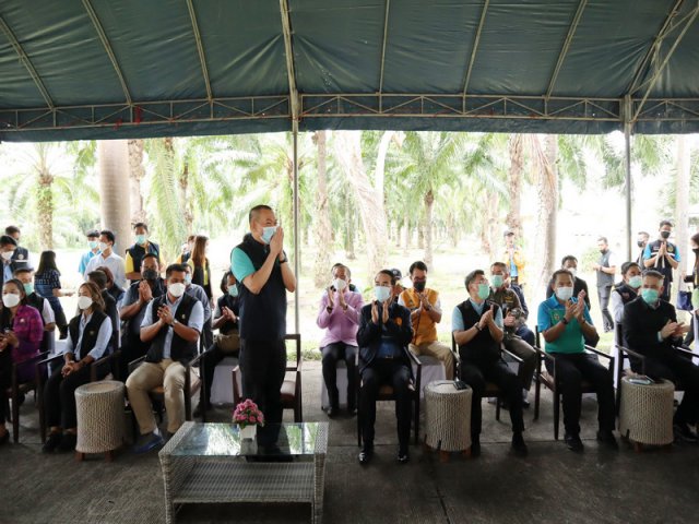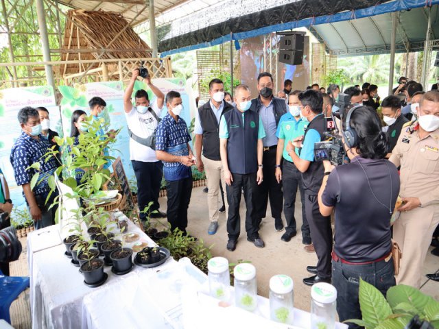 กรมพัฒนาที่ดิน ร่วมต้อนรับ รมว.กษ. เปิดโครงการถ่ายทอดเทคโนโลยีการผลิตและขยายกระท่อมพันธุ์ดี อำเภอนาบอน จังหวัดนครศรีธรรมราช