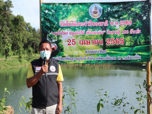 วันจันทร์ที่ 25 เมษายน 2565 เวลา 16.00น. นายภิญโญ สุวรรณชนะ ผู้อำนวยการสำนักงานพัฒนาที่ดินเขต 11 เป็นประธานเปิดกิจกรรมปลูกต้นไม้ "วันต้นไม้ประจำปีของชาติ พ.ศ.2565" เนื่องในโอกาสมหามงคลพระราชพิธี บรมราชาภิเษก ภายใต้ชื่อ "รวมใจไทย ปลูกต้นไม้ เพื่อแผ่นดิน" สืบสานสู่ 100 ล้านต้น โดยมีนายจำเริญ นาคคง ผู้อำนวยการสถานีพัฒนาที่ดินสุราษฎร์ธานี กล่าวรายงานถึงวัตถุประสงค์ในการจัดกิจกรรมในครั้งนี้ เพื่อเป็นการสร้างและกระตุ้นจิตสำนึกให้ประชาชนและเจ้าหน้าที่ในหน่วยงานได้เห็นความสำคัญของการอนุรักษ์และฟื้นฟูทรัพยากรต้นไม้ของชาติ เป็นการปลูกตันไม้ในใจคน อีกทั้งช่วยป้องกันและลผลกระทบจากการเปลี่ยนแปลงสภาพภูมิอากาศ ลดมลภาวะเป็นพิษจากฝุ่นและหมอกควัน โดยมีข้าราชการ และเจ้าหน้าที่ สพด.สุราษฎร์ฯ, ร่วมปลูกต้นกันเกรา ต้นจำปาทอง ต้นมะฮอกกานี ต้นตะเคียนทอง และต้นกฤษณา จำนวน 229 ต้น ณ บริเวณ สถานีพัฒนาที่ดินสุราษฎร์ธานี