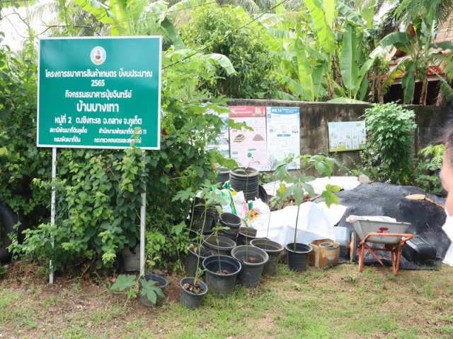 วันเสาร์ที่ 21 พฤษภาคม 2565 เวลา 09.00 น. นางสาวภัทราภรณ์ โสเจยยะ รองอธิบดีกรมพัฒนาที่ดิน พร้อมด้วยนายภิญโญ สุวรรณชนะ ผู้อำนวยการสำนักงานพัฒนาที่ดินเขต 11 ลงพื้นที่ติดตามงานโครงการธนาคารสินค้าเกษตร(ธนาคารปุ๋ยอินทรีย์) บ้านบางเทา หมู่ 2 ตำบลเชิงทะเล อำเภอถลาง จังหวัดภูเก็ต (กลุ่มวิสาหกิจชุมชนท่องเที่ยวบางเทา-เชิงทะเล) ดำเนินกิจกรรมส่งเสริมการใช้สารอินทรีย์ มุ่งสู่เกษตรอินทรีย์วีถีชุมชน เชื่อมโยงท่องเที่ยวโลก โดยนายปัญญา ใจสมุทร ผู้อำนวยการสถานีพัฒนาที่ดินภูเก็ต นายมาโนช พันธ์ฉลาด นายกองค์การบริหารส่วนตำบลเชิงทะเล นายเกชา เกราะเหล็ก ผู้ใหญ่บ้านบางเทา นายสนธยา คงทิพย์ หมอดินอาสาประจำตำบลเชิงทะเล ให้การต้อนรับ รายงานความก้าวหน้า รับนโยบายและแนวทางการขับเคลื่อนงานพัฒนาที่ดิน ต่อไป