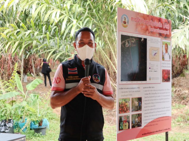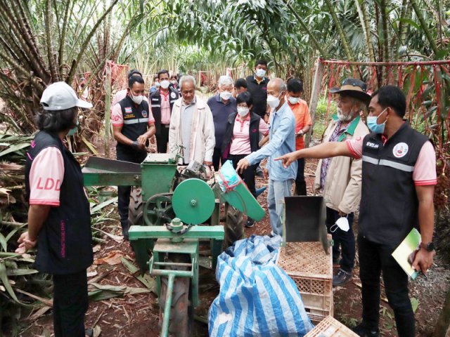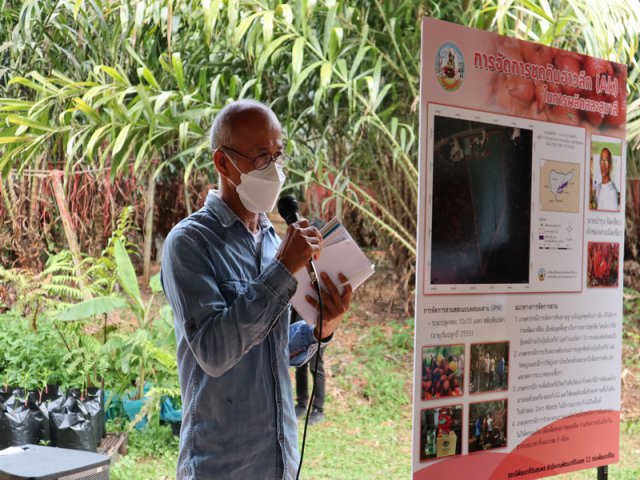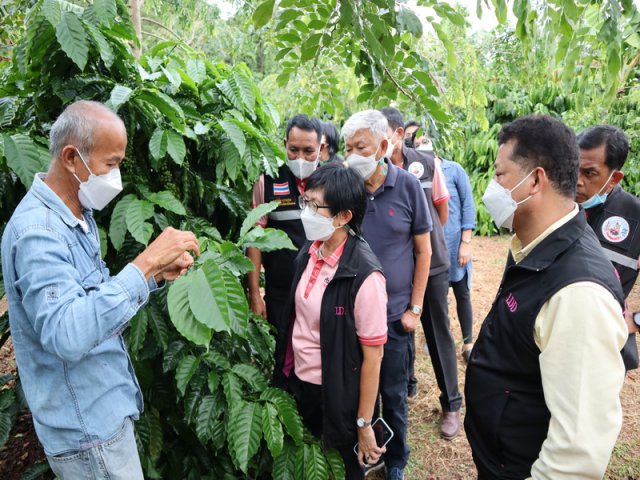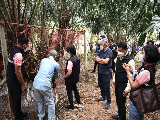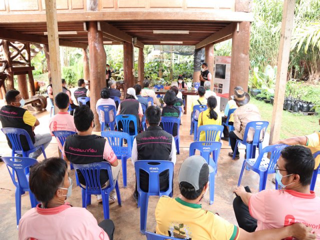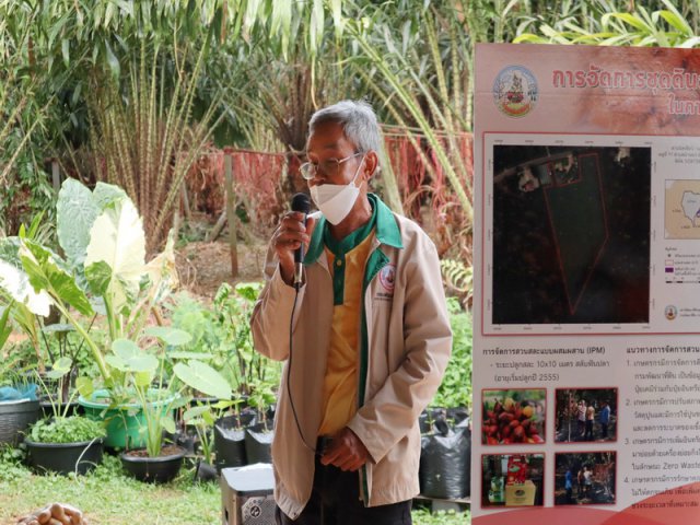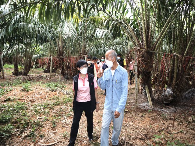 วันพฤหัสบดีที่ 23 มิถุนายน พ.ศ. 2565 เวลา 16.00น. นางสาวเบญจพร ชาครานนท์ อธิบดีกรมพัฒนาที่ดิน นายชัยวัฒน์ สิทธิบุศย์ ที่ปรึกษากรมพัฒนาที่ดิน พร้อมด้วยนายภิญโญ สุวรรณชนะ ผู้อำนวยการสำนักงานพัฒนาที่ดินเขต 11 ข้าราชการและเจ้าหน้าที่ที่เกี่ยวข้อง ร่วมติดตาม อธพ.พด. ลงพื้นที่ตรวจราชการจังหวัดชุมพร โดยมีนายวิเชียร พรหมทอง ผู้อำนวยการสถานีพัฒนาที่ดินชุมพร ข้าราชการและเจ้าหน้าที่สถานีพัฒนาที่ดินชุมพร หมอดินอาสา ในพื้นที่ ร่วมต้อนรับ อธพ.พด ตรวจเยี่ยมการจัดการสวนสละแบบผสมผสาน (IPM) สวนนิลเขียว ของนายบำรุง นิลเขียว หมู่ 11 ตำบลบ้านนา อำเภอเมือง จังหวัดชุมพร ซึ่งมีแนวทางการจัดการสวน คือมีการจัดการดินตามฐานข้อมูลชุดดินอ่าวลึก ที่ได้จากกรมพัฒนาที่ดิน เป็นข้อมูลพื้นฐานในการเพาะปลูกต้นสละ โดยมีการใส่ปุ๋ยเคมีตามค่าวิเคราะห์ดินร่วมกับปุ๋ยอินทรีย์ (มูลวัวนมอัตรา 10 กระสอบต่อต้นต่อปี) มีการปรับสภาพดินก่อนการปลูกต้นสละด้วยปุ๋ยอินทรีย์ และวัสดุปูนและมีการใช้ปูนขาวโรยโคนต้นสละทุกปีเพื่อยกระดับ pH และลดการระบาดของเชื้อรา มีการเพิ่มอินทรีย์วัตถุในดินโดยนำกิ่งสละที่มีการตัดแต่งกิ่ง มาย่อยด้วยเครื่องย่อยกิ่งไม้ และใช้คลุมดินเพื่อรักษาความชื้นในดิน ในลักษณะ Zero Waste ไม่มีการเผาขยะกิ่งไม้ในพื้นที่ มีการรักษาคุณภาพผลลิตโดยมีเทคนิคการตัดแต่งลูก ไม่ให้ดกจนเกิน เพื่อเพิ่มคุณภาพผลผลิต ร่วมกับการเก็บเกี่ยวในช่วงระยะเวลาที่เหมาะสม 8 เดือน โอกาสนี้ อธพ.พด. และคณะฯ ได้เยี่ยมชมสวนกาแฟ พันธุ์โรบัสต้า ของนายบำรุง นิลเขียว อีกด้วย