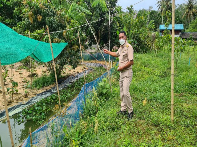 วันที่ 4 กรกฎาคม 2565 เวลา 13.00 น. นายภิญโญ สุวรรณชนะ ผู้อำนวยการสำนักงานพัฒนาที่ดินเขต11พร้อมด้วยนายคำนึง แสงขำ ผู้อำนวยการสถานีพัฒนาที่ดินนครศรีธรรมราช และเจ้าหน้าที่ ลงพื้นที่ติดตามกิจกรรมแหล่งน้ำในไร่นานอกเขตชลประทาน เกษตรกรได้ปลูกหญ้าแฝกริมขอบสระเก็บน้ำและนำน้ำไปใช้ในการเกษตร เลี้ยงปลา รดน้ำพืชผัก อย่างเต็ประสิทธิภาพ และเยี่ยมเยียนเกษตรกรกลุ่ม PGS ตำบลทุ่งโพธิ์ อำเภอจุฬาภรณ์ จังหวัดนครศรีธรรมราช