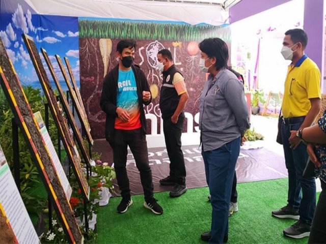 วันอาทิตย์ที่ 18 กันยายน 2565 เวลา 13:00 น. นางสาวภัทราภรณ์ โสเจยยะ รองอธิบดีกรมพัฒนาที่ดิน ลงพื้นที่ตรวจติดตามงานในพื้นที่จังหวัดนครศรีธรรมราช โดยมี นายคำนึง แสงขำ ผู้อำนวยการสถานีพัฒนาที่ดินนครศรีธรรมราช พร้อมด้วยเจ้าหน้าที่ ร่วมให้การต้อนรับ โดยลงพื้นที่ตรวจเยี่ยมนิทรรศการหน่วยงานร่วมสนองพระราชดำริฯ ในการประชุมวิชาการและนิทรรศการ ครั้งที่ 11 ทรัพยากรไทย : 30 ปี อพ.สธ. ประโยชน์แท้แก่มหาชน ระหว่างวันที่ 19-24 กันยายน พ.ศ. 2565 ณ มหาวิทยาลัยวลัยลักษณ์ อ.ท่าศาลา จ.นครศรีธรรมราช สำหรับนิทรรศการดังกล่าว แบ่งเป็น 3 ส่วน ได้แก่ 1)นำเสนอผลดำเนินงานโครงการอนุรักษ์พันธุกรรมพืชอันเนื่องมาจากพระราชดำริฯ ในการปกปักทรัพยากร สำรวจ รวบรวม ปลูกรักษาทรัพยากร สนับสนุนความรู้และฐานข้อมูลดิน สร้างจิตสำนึกในการอนุรักษ์ทรัพยากร รวมถึงสนับการดำเนินงานการอนุรักษ์พันธุกรรมพืชในโรงเรียน 2)จากผืนดินสู่ป่าเพื่อประโยชน์แท้แก่มหาชน เป็นการจำลองความสัมพันธ์ของดินกับพืชพันธุ์ไม้จากต้นน้ำสู่ปลายน้ำ 3)วันดินโลก ปี 2565 ในหัวข้อ “อาหาร ก่อกำเนิดเกิดจากดิน”