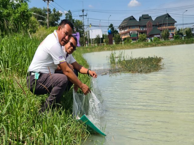 ผอ.สพข.11 และเจ้าหน้าที่สถานีพัฒนาที่ดินนครศรีธรรมราช ร่วมปล่อยพันธุ์ปลา เพื่อถวายเป็นพระราชกุศลแด่สมเด็จพระเจ้าลูกเธอ เจ้าฟ้าพัชรกิติยาภาฯ ขอให้หายจากพระอาการประชวร