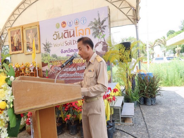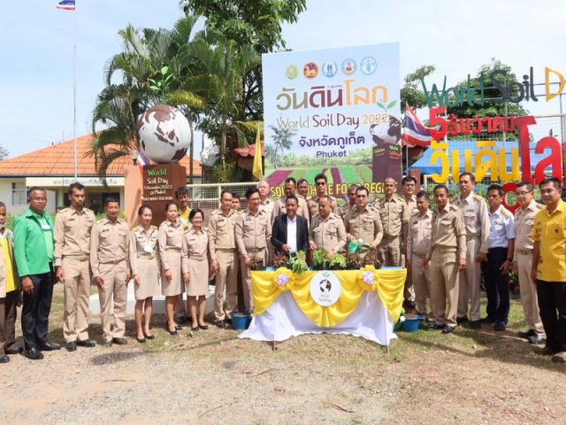 วันจันทร์ที่ 26 ธันวาคม 2565 นายภิญโญ สุวรรณชนะ ผู้อำนวยการสำนักงานพัฒนาที่ดินเขต 11 พร้อมด้วยหัวหน้าส่วนราชการที่เกี่ยวข้อง ร่วมพิธีเปิดงานวันดินโลก (World Soil Day) ประจำปี 2565 "Soils, where food begins : อาหาร ก่อกำเนิด เกิดจากดิน" ณ สถานีพัฒนาที่ดินภูเก็ต โดยได้รับเกียรติจากนายณรงค์ วุ่นซิ้ว ผู้ว่าราชการจังหวัดภูเก็ต เป็นประธานในพิธี นายเฉลิมพล เกิดทรัพย์ นายกเทศมนตรี ตำบลศรีสุนทร กล่าวต้อนรับ นายปัญญา ใจสมุทร กล่าวรายงานวัตถุประสงค์ การจัดงานเพื่อน้อมรำลึกพระบาทสมเด็จพระบรมชนกาธิเบศร มหาภูมิพลอดุลยเดชมหาราช บรมนาถบพิตร “นักวิทยาศาสตร์ดินเพื่อมนุษยธรรม” ด้านการอนุรักษ๋ทรัพยากรดิน และเพยแพร่พระราชกรณียกิจด้านการพัฒนาทรัพยากรเพื่อการเกษตรสร้างการรับรู้และความเข้าใจวันดินโลก สร้างการมีส่วนร่วมของทุกภาคส่วนในการดูแลรักษาทรัพยากรดินอย่างยั่งยืน ภายในงานมีการจัดนิทรรศการเฉลิมพระเกียรติ “นักวิทยาศาสตร์ดินเพื่อมนุษยธรรม” ประวัติความเป็นมาของวันดินโลก นิทรรศการวิชาการด้านดิน นิทรรศการหน่วยงานราชการ การจำหน่ายผลผลิตทางการเกษตรของหมอดินอาสา เกษตรกร และกลุ่มวิสาหกิจชุมชน โดยมีหัวหน้าส่วนราชการ นักเรียน นักศึกษา หมอดินอาสา และหน่วยงานภาคีเครือข่ายเข้าร่วมในงานกว่า 400 คน ณ สถานีพัฒนาที่ดินภูเก็ต ตำบลศรีสุนทร อำเภอถลาง จังหวัดภูเก็ต