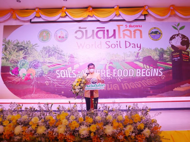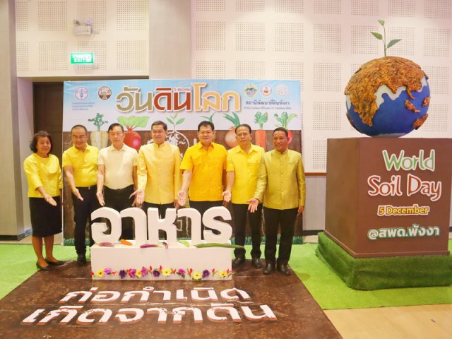 วันอังคารที่ 27 ธันวาคม 2565 นายภิญโญ สุวรรณชนะ ผู้อำนวยการสำนักงานพัฒนาที่ดินเขต 11 พร้อมด้วยหัวหน้าส่วนราชการที่เกี่ยวข้อง ร่วมพิธีเปิดงานวันดินโลก (World Soil Day) ประจำปี 2565 "Soils, where food begins : อาหาร ก่อกำเนิด เกิดจากดิน" โดยได้รับเกียรติจากนายเถลิงศักดิ์ นุชประหาร รองผู้ว่าราชการจังหวัดพังงา เป็นประธานในพิธี นางสาวยุพาพร นาควิสัย ผู้อำนวยการสถานีพัฒนาที่ดินพังงา กล่าวรายงานวัตถุประสงค์ การจัดงานเพื่อสำนึกในพระมหากรุณาธิคุณพระบาทสมเด็จพระบรมชนกาธิเบศร มหาภูมิพลอดุลยเดชมหาราช บรมนาถบพิตร “นักวิทยาศาสตร์ดินเพื่อมนุษยธรรม” ด้านการอนุรักษ์ทรัพยากรดิน และเผยแพร่พระราชกรณียกิจด้านการพัฒนาที่ดิน สร้างการรับรู้และความเข้าใจวันดินโลก สร้างการมีส่วนร่วมของทุกภาคส่วนในการดูแลรักษาทรัพยากรดินอย่างยั่งยืน ภายในงานมีการจัดนิทรรศการเฉลิมพระเกียรติ “นักวิทยาศาสตร์ดินเพื่อมนุษยธรรม” ประวัติความเป็นมาของวันดินโลก นิทรรศการวิชาการด้านดิน นิทรรศการหน่วยงานราชการ การจำหน่ายผลผลิตทางการเกษตรของหมอดินอาสา และเกษตรกร โดยมีหัวหน้าส่วนราชการ หมอดินอาสา และหน่วยงานภาคีเครือข่ายเข้าร่วมในงานกว่า 200 คน ณ หอประชุมจำปูน ศูนย์ราชการจังหวัดพังงา ตำบลถ้ำน้ำผุด อำเภอเมือง จังหวัดพังงา
