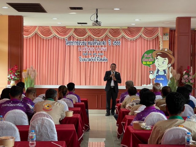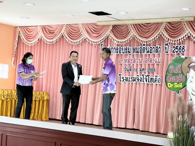 วันที่ 18 มกราคม 2566 สถานีพัฒนาที่ดินชุมพร จัดโครงการอบรมหมอดินอาสา ประจำปี 2566 หลักสูตร 3 การพัฒนาศักยภาพของหมอดินอาสาด้านการพัฒนาที่ดินตามบริบทของท้องถิ่น โดยมีหน่วยงานภาคี อาทิ สำนักงานเกษตรอำเภอหลังสวน กลุ่มวิสาหกิจชุมชน ฐากูรฟาร์ม เขาอองฟาร์ม กลุ่มเกษตรอินทรีย์ PGS ตำบลบางน้ำจืด ตำบลนาขา ร่วมจัดนิทรรศการ โดยมี นายวิเชียร พรหมทอง ผู้อำนวยการสถานีพัฒนาที่ดินชุมพร เป็นประธานเปิดการอบรมและนายภิญโญ สุวรรณชนะ ผู้อำนวยการสำนักงานพัฒนาที่ดินเขต 11 มอบประกาศนียบัตรให้แก่หมอดินอาสาอำเภอหลังสวนและอำเภอละแม จำนวน 110 ราย ณ ห้องประชุมโรงแรมจิงโจ้ อ.หลังสวน จ.ชุมพร