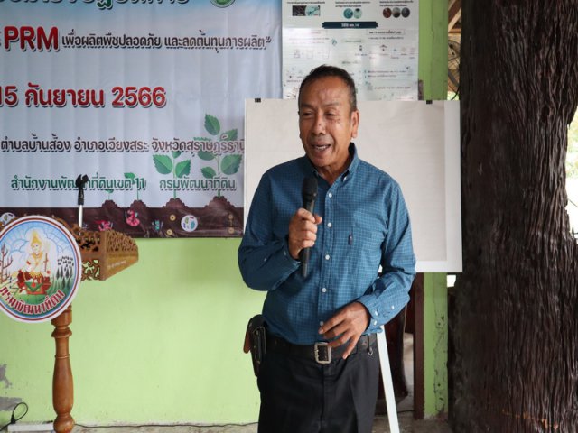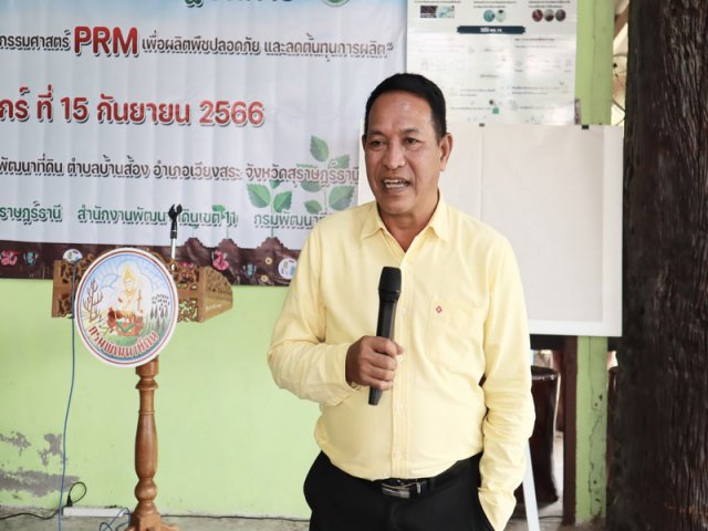 วันศุกร์ที่ 15 กันยายน 2566 เวลา 09.00น. สถานีพัฒนาที่ดินสุราษฎร์ธานี จัดโครงการอบรมเชิงปฏิบัติการ หลักสูตร "การฟื้นฟูดินด้วยนวัตกรรมศาสตร์ PRM เพื่อผลิตพืชปลอดภัยและลดต้นทุนการผลิต" โดยมีนายภิญโญ สุวรรณชนะ ผู้อำนวยการสำนักงานพัฒนาที่ดินเขต 11 นายจำเริญ นาคคง ผู้อำนวยการสถานีพัฒนาที่ดินสุราษฎร์ธานี พร้อมด้วยนายสุริยา ชูสีสุข หมอดินอาสาประจำอำเภอเวียงสระ ร่วมต้อนรับคณะวิทยากร PRM นำโดย อาจารย์รัชยุทธ วรรณศิริบุญ อาจารย์อาคม ภูติภัทร์ เป็นวิทยากรบรรยายการฟื้นฟูดินด้วยนวัตกรรมศาสตร์ PRM เพื่อผลิตพืชปลอดภัยและลดต้นทุนการผลิต ซึ่งการจัดโครงการอบรมในครั้งนี้ เพื่อส่งเสริมการใช้นวัตกรรมศาสตร์ PRM ซึ่งเป็นเทคโนโลยีการผลิตวัสดุปรับปรุงดินสูตรเพื่อแก้ปัญหาโรคควบคุมและกำจัดโรคพืช อย่างมีประสิทธิภาพ และสามารถแก้ไขปัญหาโรคพืชในระดับพื้นที่ต่างๆ ที่มีสภาพแวดล้อมและพืชต่างๆได้ เพื่อผลิตพืชปลอดภัย และลดต้นทุนการผลิต เพื่อศึกษาประสิทธิภาพ ของสารปรับปรุงดินในการควบคุมกำจัดโรคพืชในพื้นที่ปลูกทุเรียน พร้อมฝึกปฏิบัติการผลิตปุ๋ยหมัก น้ำหมักสูตร RPM เทคนิคการห่มบ่มดิน และการดูแลลักษณะ อาการพืช โดยมีเกษตรกร หมอดินอาสาในพื้นที่เข้าร่วมอบรมจำนวน 50 ราย ณ ศูนย์ฝึกปฏิบัติการพัฒนาที่ดิน บ้านหนองชุมแสง หมู่ที่ 8 ตำบลบ้านส้อง อำเภอเวียงสระ จังหวัดสุราษฎร์ธานี