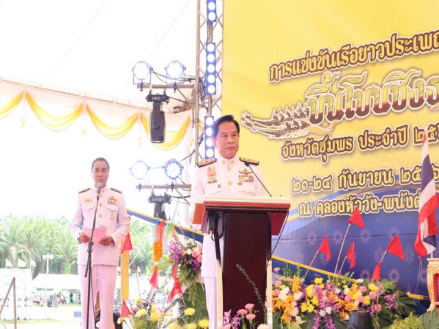 วันพฤหัสบดีที่ 21 กันยายา 2566 เวลา 11.00น. กรมพัฒนาที่ดิน นำโดยนายวัฒนา มังธิสาร รองอธิบดีกรมพัฒนาที่ดิน พร้อมด้วยนายภิญโญ สุวรรณชนะ ผู้อำนวยการสำนักงานพัฒนาที่ดินเขต 11 นายชัยชนะ บัวชุม ผู้อำนวยการสถานีพัฒนาที่ดินชุมพร ร่วมต้อนรับ"รองนายกรัฐมนตรี นายพีระพันธุ์ สาลีรัฐวิภาค และรัฐมนตรีช่วยว่าการกระทรวงเกษตรและสหกรณ์ นายอนุชา นาคาศัย พร้อมคณะ ลงพื้นที่อำเภอเมืองชุมพร จังหวัดชุมพร" เปิดพิธีการแข่งเรือยาว ประเพณีขึ้นโขนชิงธง จังหวัดชุมพร พร้อมอันเชิญถ้วยพระราชทานขึ้นแท่นประดิษฐานหน้าพระบรมฉายาลักษณ์ โดยมีนายกองค์การบริหารส่วนจังหวัดชุมพร นายนพพร อุสิทธิ์ กล่าวรายงาน ซึ่งมีหัวหน้าส่วนราชการจังหวัด หน่วยงานปกครองส่วนท้องถิ่น หน่วยงานราชการในสังกัดกระทรวงเกษตรและสหกรณ์ หน่วยงานที่เกียวข้อง ตลอดจนประชาชนในพื้นร่วมให้การต้อนรับ ณ คลองหัววัง-พนังตัก หมู่ที่ 9 ตำบลนาชะอัง อำเภอเมืองชุมพร จังหวัดชุมพร