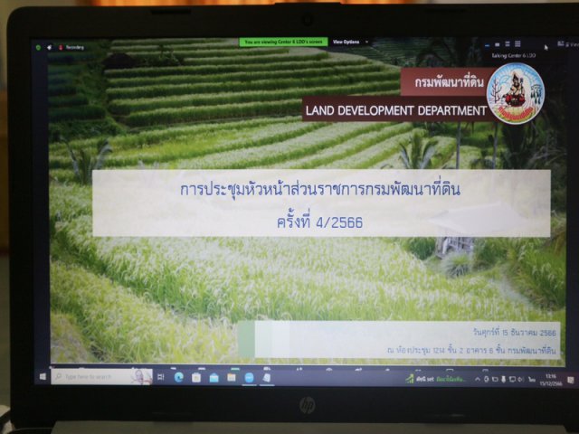 วันศุกร์ที่ 15 ธันวาคม 2566 เวลา 13.00น. นายพบชาย สวัสดี ผู้เชี่ยวชาญด้านวางระบบการพัฒนาที่ดิน รักษาราชการแทน ผู้อำนวยการสำนักงานพัฒนาที่ดินเขต 11 พร้อมด้วยหัวหน้าส่วนราชการ ข้าราชการและเจ้าหน้าที่ เข้าร่วมประชุมหัวหน้าส่วนราชการกรมพัฒนาที่ดิน ครั้งที่ 4/2566 โดยมีนายปราโมทย์ ยาใจ อธิบดีกรมพัฒนาที่ดิน เป็นประธานการประชุมฯ เพื่อการติดตามผลการดำเนินงานและการใช้จ่ายงบประมาณ การปรับปรุงหลักสูตรฝึกอบรมหมอดินอาสา การจัดกิจกรรมแทนเผา บรรเทามลพิษ พิชิตหมอกควัน มหกรรมการเกษตรและท่องเที่ยวสายดอกไม้งามริมกว๊านพะเยา