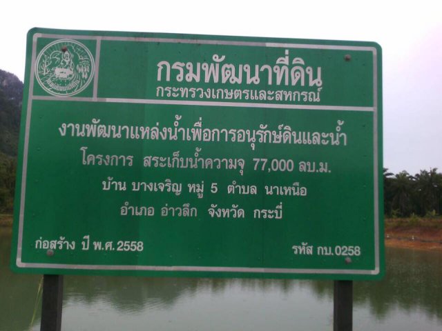 วันพฤหัสบดีที่ 1 ธันวาคม 2559 เวลา 13.30 น. นายถวิล มั่งนุ้ย ผู้อำนวยการสำนักงานพัฒนาที่ดินเขต 11 พร้อมด้วย นายประสิทธิ์ แสงภักดี ผอ.สพด.กระบี่ ลงพื้นที่ติดตามงานพัฒนาแหล่งน้ำเพื่อการอนุรักษ์ดินและน้ำ โครงการ สระเก็บน้ำ ความจุ 77,000 ลบ.ม. ณ บ้านบางเจริญ ม.5 ต.นาเหนือ อ.อ่าวลึก จ.กระบี่