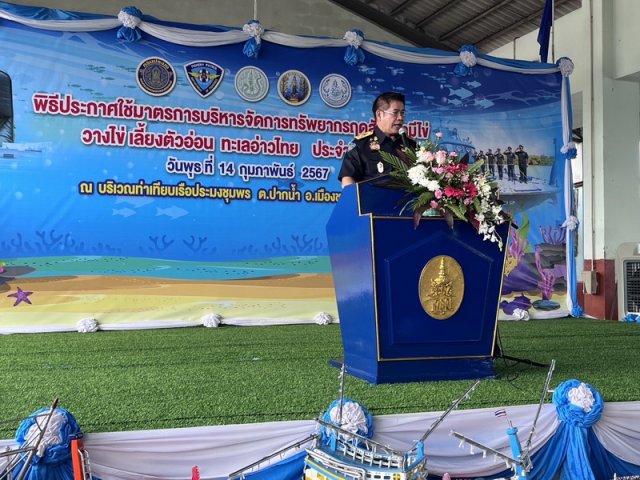 วันพุธที่ 14 กุมภาพันธ์ 2567 เวลา 10.00น นายนรา สุขไชย ผู้อำนวยสำนักงานพัฒนาที่ดินเขต 11 พร้อมด้วยนายชัยชนะ บัวชุม ผู้อำนวยการสถานีพัฒนาที่ดินชุมพร ข้าราชการและเจ้าหน้าที่ ร่วมต้อนรับ ร้อยเอกธรรมนัส พรหมเผ่า รัฐมนตรีว่าการกระทรวงเกษตรและสหกรณ์ ลงพื้นที่ตรวจราชการ พิธีประกาศใช้มาตรการบริหารจัดการทรัพยากรสัตว์น้ำมีไข่ วางไข่ เลี้ยงตัวอ่อน พื้นที่ทะเลอ่าวไทย ประจำปี 2567 (ปิดอ่าว) บริเวณท่าเทียบเรือประมงชุมพร พร้อมชมวิดิทัศน์นโยบาย/ผลงาน รมว.กษ. รับชมการแสดงต้อนรับ และมอบรางวัล โดยมีนายวิสาห์ พูลศิริรัตน์ ผู้ว่าราชการจังหวัดชุมพร กล่าวต้อนรับ ตัวแทนนายกสมาคมประมงชุมพร กล่าวรายงานข้อมูลเกี่ยวกับสภาวะการทำประมงในพื้นที่จังหวัดชุมพร โอกาสนี้รมว.กษ. เป็นประธานในพีธีบวงสรวงพลเรือเอกพระเจ้าบรมวงศ์เธอ พระองค์เจ้าอาภากรเกียรติวงศ์ โดยมีอธิบดีกรมประมง กล่าวรายงาน รมว.กษ.กล่าวประกาศใช้มาตรการบริหารจัดการทรัพยากรสัตว์น้ำมีไข่ วางไข่ เลี้ยงตัวอ่อน พื้นที่ทะเลอ่าวไทย ประจำปี 2567 พร้อมมอบแผ่นป้ายเงินอุดหนุนโครงการพัฒนาอาชีพและส่งเสริมความเข้มแข็งของชุมชนประมง (กิจกรรมพัฒนาอาชีพชุมชนประมง) ประจำปี 2567 ให้แก่ประธานองค์กรชุมชนประมงท้องถิ่นในเขตจังหวัดชุมพร สุราษฎร์ธานี และประจวบคีรีขันธ์ (9 ชุมชน) มอบโฉนดเพื่อการเกษตรให้กับเกษตรกรในพื้นที่ จำนวน 50 ราย ปล่อยขบวนเรือตรวจประมงทะเลออกปฏิงานในพื้นที่ ปล่อยพันธุ์สัตว์น้ำ และเยี่ยมชมนิทรรศการ ณ บริเวณท่าเทียบเรือประมงชุมพร ตำบลปากน้ำ อำเภอเมืองชุมพร จังหวัดชุมพร
