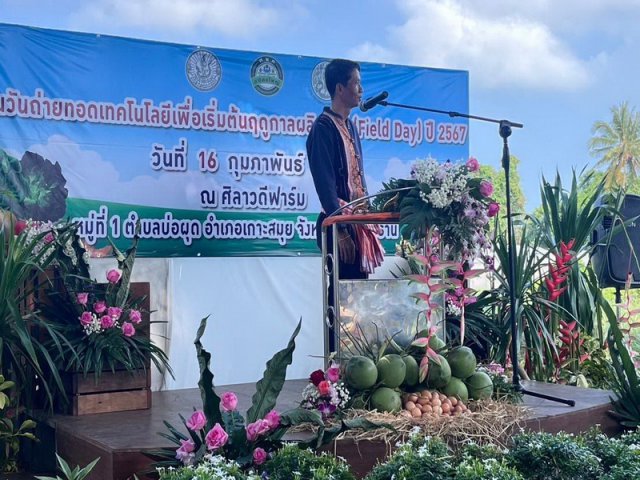 วันศุกร์ที่ 16 กุมภาพันธ์ 2567 เวลา 10.00น. นายนรา สุขไชย ผู้อำนวยการสำนักงานพัฒนาที่ดินเขต 11 พร้อมด้วยนายนพพล ถมทอง ผู้อำนวยการสถานีพัฒนาที่ดินสุราษฎร์ธานี และเจ้าหน้าที่ ร่วมพิธีเปิดและจัดนิทรรศการงาน “วันถ่ายทอดเทคโนโลยีเพื่อเริ่มต้นฤดูกาลผลิตใหม่ (Field Day)“ ภายใต้โครงการศูนย์เรียนรู้การเพิ่มประสิทธิภาพการผลิตสินค้าเกษตร ประจำปี 2567 อำเภอเกาะสมุย โดยมีนายชัชชัย มณี ปลัดอาวุโส เป็นประธานเปิดงาน ฯ นายคณิต สมวงค์ กล่าวรายงานวัตถุประสงค์การจัดงาน ”วันถ่ายทอดเทคโนโลยีเพื่อเริ่มต้นฤดูกาลผลิตใหม่ (Field Day)“ ประจำปี 2567 พร้อมเยี่ยมชมสถานี/ฐานเรียนรู้ต่างๆ จากส่วนราชการที่ร่วมจัดนิทรรศการ ณ ศิลาวดีฟาร์ม หมู่ที่ 1 ตำบลบ่อผุด อำเภอเกาะสมุย จังหวัดสุราษฎร์ธานี