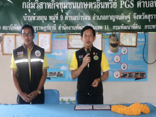 วันเสาร์ที่ 27 เมษายน 2567 นายปราโมทย์ ยาใจ อธิบดีกรมพัฒนาที่ดิน พร้อมด้วยนายจำเริญ นาคคง ผู้อำนวยการกองวิจัยและพัฒนาการจัดการที่ดิน นายชาคริต อินนะระ กองนโยบายและแผนการใช้ที่ดิน ลงพื้นที่ตรวจเยี่ยมสมาชิกเครือข่ายเกษตรอินทรีย์ PGS จังหวัดสุราษฎร์ธานี โดยมีนายนรา สุขไชย ผู้อำนวยการสำนักงานพัฒนาที่ดินเขต 11 นายนพพล ถมทอง ผู้อำนวยการสถานีพัฒนาที่ดินสุราษฎร์ธานี หน่วยงานในพื้นที่และสมาชิกเครือข่ายเกษตรอินทรีย์ PGS ให้การต้อนรับ ณ ศูนย์เครือข่ายเกษตรอินทรีย์ PGS บ้านห้วยถุน หมู่ที่9 ตำบลป่าร่อน อำเภอกาญจนดิษฐ์ จังหวัดสุราษฎร์ธานี