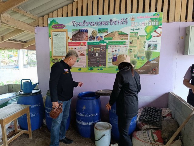 วันพฤหัสบดีที่ 4 กรกฎาคม 2567 เวลา 14.30น. นายนรา สุขไชย ผู้อำนวยการสำนักงานพัฒนาที่ดินเขต 11 พร้อมด้วยนายวิเชียร พรหมทอง ผู้อำนวยการสถานีพัฒนาที่ดินนครศรีธรรมราช และเจ้าหน้าที่ ลงพื้นที่ติดตามงานและตรวจเยี่ยมศูนย์การเรียนตำรวจตระเวนชายแดน บ้านหลังอ้ายหมี อำเภอชะอวด จังหวัดนครศรีธรรมราช ซึ่งได้รับการสนับสนุนสารเร่งซุปเปอร์ พด.1, 2, 3 และ 6 เพื่อผลิตสารชีวภาพ โดโลไมท์ และปุ๋ยพืชสดเพื่อปรับปรุงบำรุงดินเนื่องจากสภาพเป็นดินกรด รวมทั้งสนับสนุนเมล็ดพันธุ์ผักเพื่อโครงการอาหารกลางวัน พร้อมรับฟังข้อเสนอแนะ พบปะพูดคุยกับคณะครู และเยี่ยมชมการดำเนินงานต่างๆ ภายในศูนย์การเรียนตำรวจตระเวนชายแดนบ้านหลังอ้ายหมี