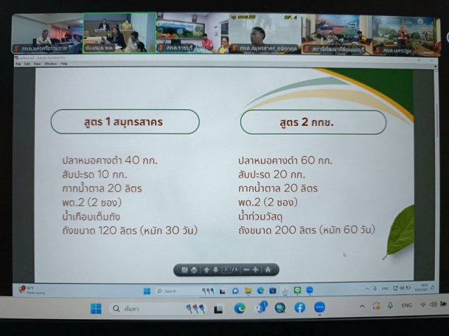 วันอังคารที่ 6 สิงหาคม 2567 เวลา 13.00น. นายนรา สุขไชย ผู้อำนวยการสำนักงานพัฒนาที่ดินเขต 11 ร่วมประชุมคณะทำงานติดตามการผลิตน้ำหมักชีวภาพปลาหมอคางดำ เพื่อติดติดตามความก้าวหน้าในการดำเนินงานการผลิตน้ำหมักชีวภาพ จากปลาหมอคางดำ ตามโครงการขับเคลื่อนโครงการผลิตน้ำหมักชีวภาพ เพื่อเกษตรกรชาวสวนยาง ให้บรรลุตามเป้าหมาย ผ่านระบบ Zoom Meeting ณ ห้องประชุมสถานีพัฒนาที่ดินนครศรีธรรมราช