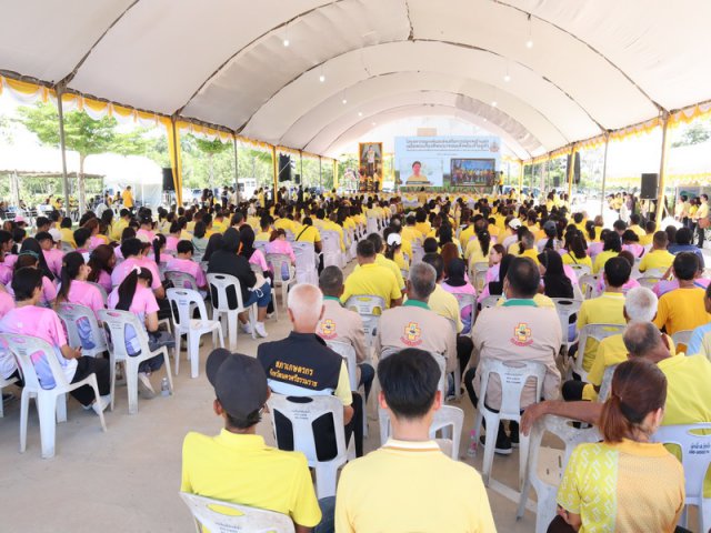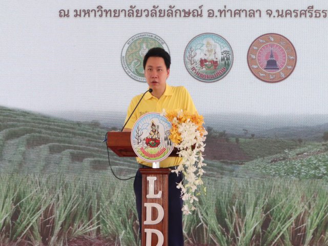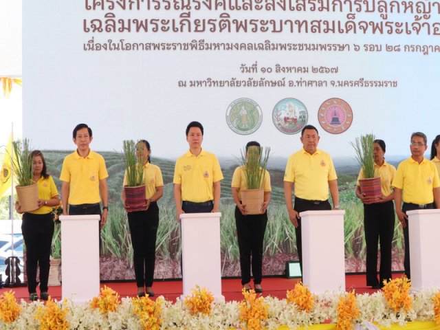 วันเสาร์ที่ 10 สิงหาคม 2567 เวลา 10.00น. กรมพัฒนาที่ดิน นำโดยนายปราโมทย์ ยาใจ อธิบดีกรมพัฒนาที่ดิน พร้อมด้วยรองอธิบดีกรมพัฒนาที่ดิน ผู้อำนวยการสำนักงานพัฒนาที่ดินเขต 11 หัวหน้าส่วนราชการที่เกี่ยวข้อง ร่วมต้อนรับนายอรรถกร ศิริลัทธยากร รัฐมนตรีช่วยว่าการกระทรวงเกษตรและสหกรณ์ และคณะฯ เป็นประธานเปิดงานโครงการรณรงค์และส่งเสริมการปลูกหญ้าแฝกเฉลิมพระเกียรติพระสมเด็จพระเจ้าอยู่หัว เนื่องในโอกาสมหามงคลเฉลิมพระชนมพรรษา 6 รอบ 28 กรกฎาคม 2567 ซึ่งเป็นศูนย์กลางการจัดงาน ณ มหาวิทยาลัยวลัยลัษณ์ ตำบลไทยบุรี อำเภอท่าศาลา จังหวัดนครศรีธรรมราช และ 77 จังหวัดทั่วประเทศ โดยมีอธิบดีกรมพัฒนาที่ดิน กล่าวรายงานฯ รมช.เกษตร กล่าวทักทายผู้ร่วมงานในพื้นที่จังหวัดนครศรีธรรมราช พื้นที่ตัวแทนภาค 6 จังหวัด เกษตรกร หมอดินและผู้ร่วมงานทั้ง 77 จังหวัด และกล่าวเปิดงานรณรงค์และส่งเสริมการปลูกหญ้าแฝกเฉลิมพระเกียรติฯ นำขบวนรณรงค์การปลูกหญ้าแฝกพร้อมกันทั่วประเทศ (ผ่านระบบออนไลน์) ร่วมมอบกล้าหญ้าแฝก 600,000 กล้า ให้แก่หมอดินอาสาเพื่อขยายผลการรณรงค์ปลูกหญ้าแฝกในจังหวัดนครศรีธรรมราช ร่วมปลูกไม้มงคลจำนวน 6 ต้น เพื่อเป็นเกียรติแก่ มหาวิทยาลัยวลัยลักษณ์ ปล่อยพันธุ์ปลาลงสู่สระน้ำจำนวน 72,000 ตัว พร้อมเยี่ยมชมนิทรรศการหน่วยงานต่าง ๆ และตลาดสินค้าเกษตร ซึ่งมีหัวหน้าส่วนราชการ รัฐวิสาหกิจ ภาคเอกชน หมอดินอาสา ครู นักเรียน และประชาชนเข้าร่วมงานในครั้งนี้ ณ มหาวิทยาลัยวลัยลัษณ์ ตำบลไทยบุรี อำเภอท่าศาลา จังหวัดนครศรีธรรมราช