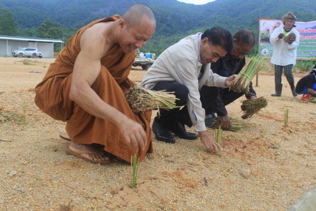 โครงการแปดล้านเก้ากล้าหญ้าแฝก น้อมเกล้าถวายพ่อแห่งแผ่นดิน ถวายเป็นพระราชกุศล แด่พระบาทสมเด็จพระปรมินทรมหาภูมิพลอดุลยเดช ณ วัดป่าชัยมงคล บ้านพรรั้ง ต.บางริ้น อ.เมือง จ.ระนอง