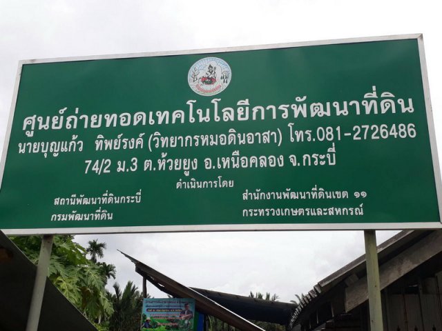 วันอังคารที่ 25 กรกฎาคม 2560 เวลา 10.00 น. นายถวิล มั่งนุ้ย ผู้อำนวยการสำนักพัฒนาที่ดินเขต 11  พร้อมด้วย นางอารีย์ สวนแก้ว นักวิชาการเกษตรปฎิบัติการ และนายคนิตย์ พัดนวน นักวิชาการเกษตร เจ้าหน้าที่สถานีพัฒนาที่ดินกระบี่ ลงพื้นที่ติดตามงานและสร้างขวัญกำลังใจนายบุญแก้ว  ทิพย์รงค์  (วิทยากรหมอดินอาสา) ณ ศูนย์ถ่ายทอดเทคโนโลยีการพัฒนาที่ดิน หมู่ที่3  ตำบลห้วยยูง  อำเภอเหนือคลอง  จังหวัดกระบี