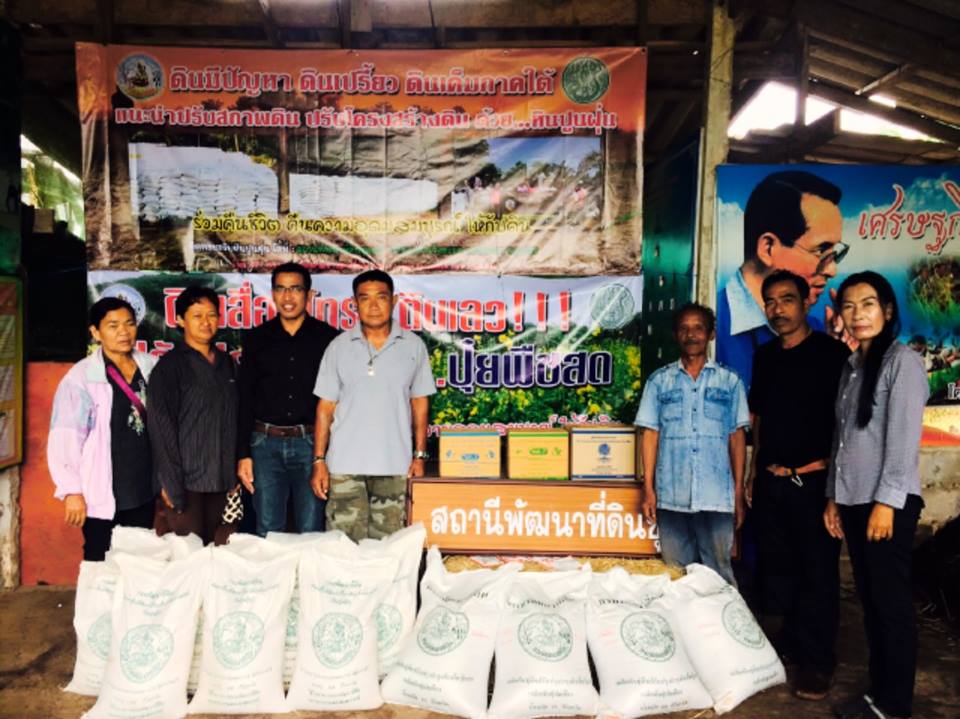 วันที่ 28 มีนาคม 2560 สนับสนุนปัจจัยการผลิต (หินปูนฝุ่น) จำนวน 200 ตัน ให้แก่กลุ่มเกษตรกรและหมอดินอาสาฯ ในพื้นที่ ต.บางน้ำจืด